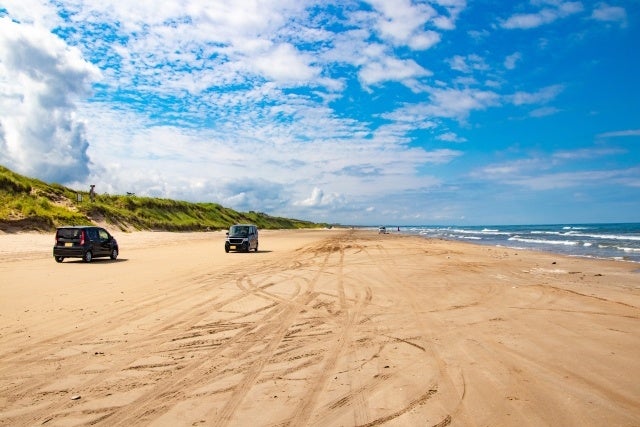 千里浜なぎさドライブウェイはとても珍しい「砂浜を車で走れる海岸」であり全長8キロメートルの砂浜ドライブウェイです。
