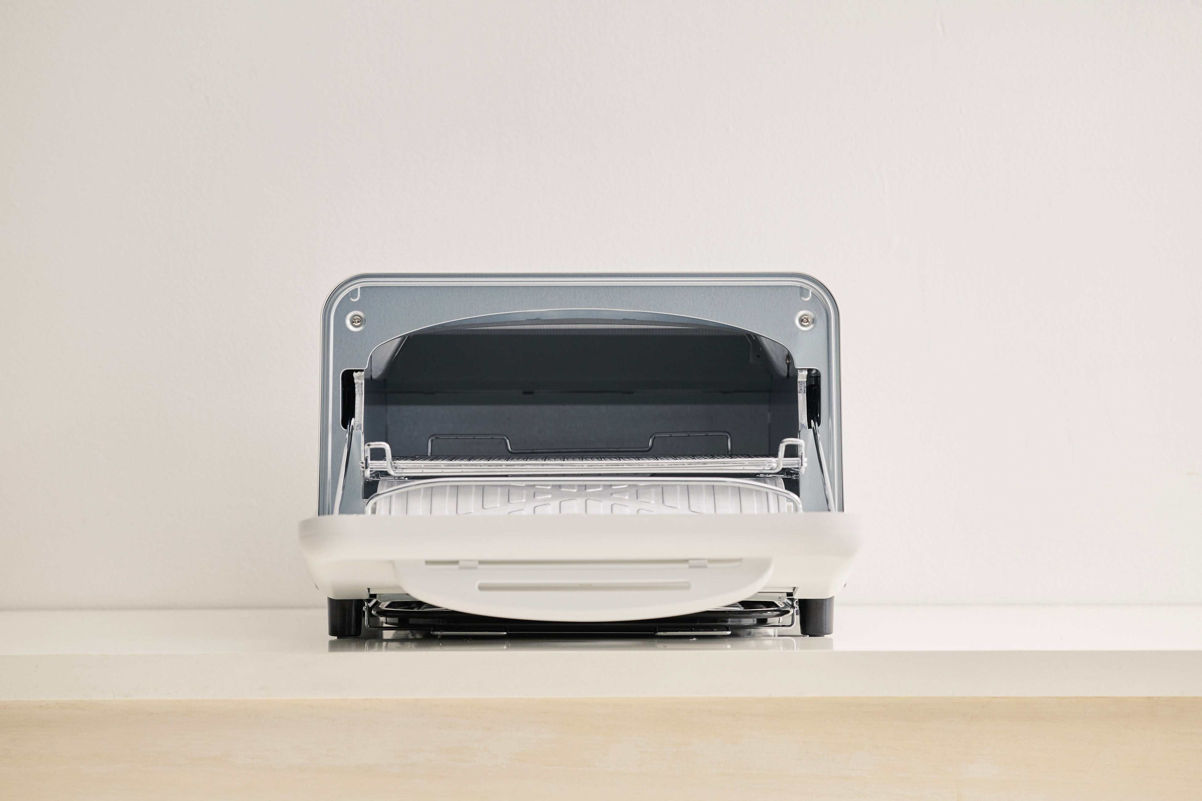 本体サイズはコンパクトながら庫内が広いので、一度にトーストが4枚焼けます。最大25cmのピザも付属のこんがりトレーにのせて、丸ごと焼くことができます。