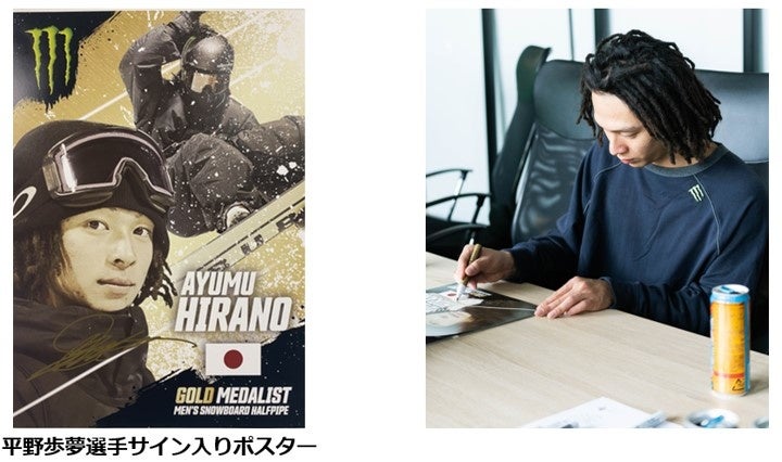 本キャンペーンは、平野歩夢の直筆サイン入りポスターが当たるスノーボード・スケートボードファン、平野歩夢ファン必見のキャンペーンです。 3月25日(金)~3月31日(木)の期間中、モンスターエナジージャパン公式Twitterアカウント(@MonsterEnergyJP)をフォローし、対象のツイートをリツイートして応募すると抽選で20名様に当たります。