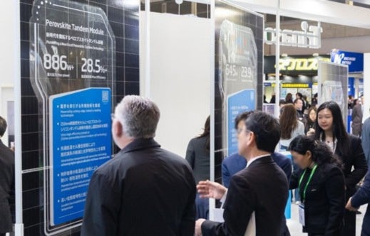 PV EXPOで日本初公開したペロブスカイト-シリコンタンデム太陽電池技術を紹介しています。