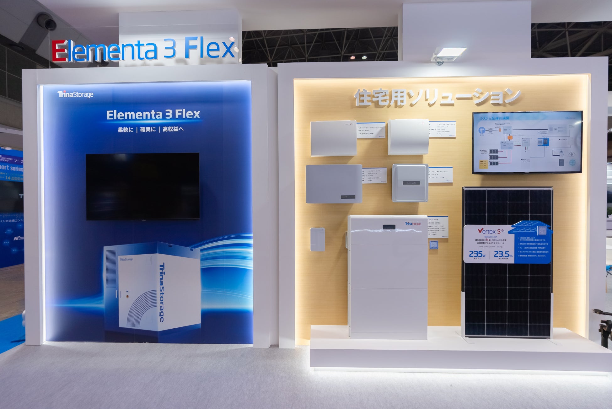 PV EXPOで世界初公開した系統用蓄電池「Elementa 3 Flex」について紹介しています。
