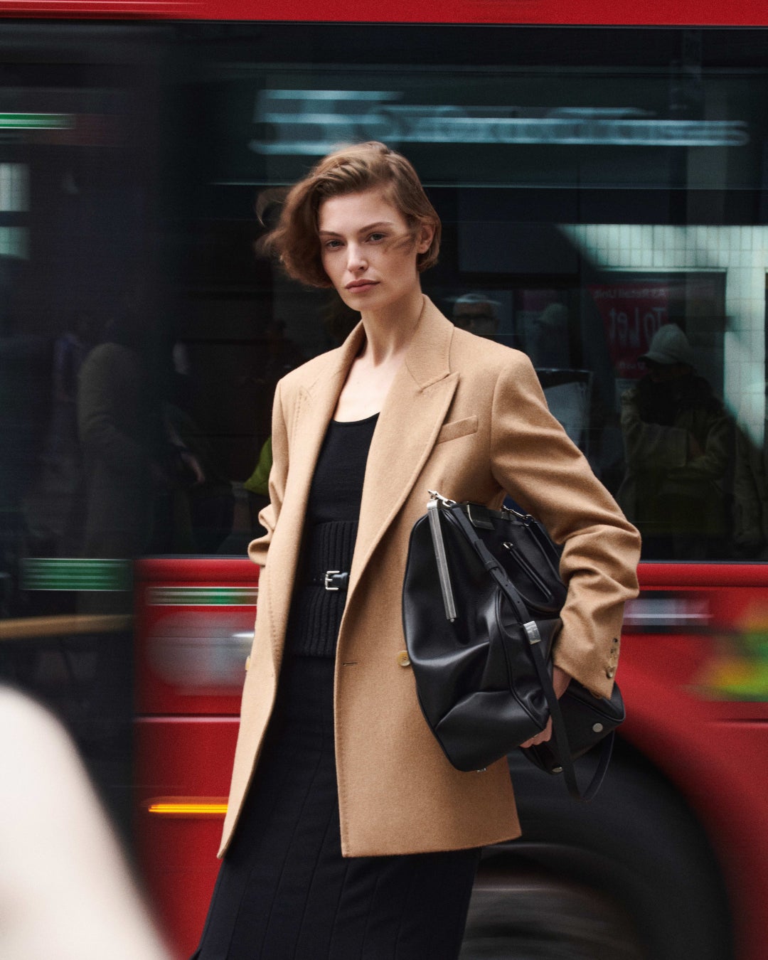 キャンペーンビジュアルはBibi Breslin(ビビ・ブレスリン)を起用し、世界的フォトグラファー、Oliver Hadlee Pearch(オリバー・ハドリー・パーチ)がロンドンで撮影しました。このキャンペーンで伝えるのは、女性の内面に宿る本質的な強さ。さらに女性たちは、人生の失敗を乗り越えることで完璧が最終の目標ではないことを受け入れ、雑踏の中で自分の声を見つけることこそが最も重要である事を学びます。彼女が身に着けているのは、マックスマーラの卓越したクラフトマンシップを体現するシグネチャーアイテム”オリンピア ジャケット”。軽やかなピュアキャメルを使用したダブルブレストジャケットは、幅広のショルダーとオーバーサイズながら凛としたストレートなシルエットが際立っています。ギリシャ神話を連想させるネーミングは、女性のヒーローを意味し、誰であろうと、どのように生きようと、どこの出身であろうと、すべての女性が卓越した存在になれるという思いが表現されています。