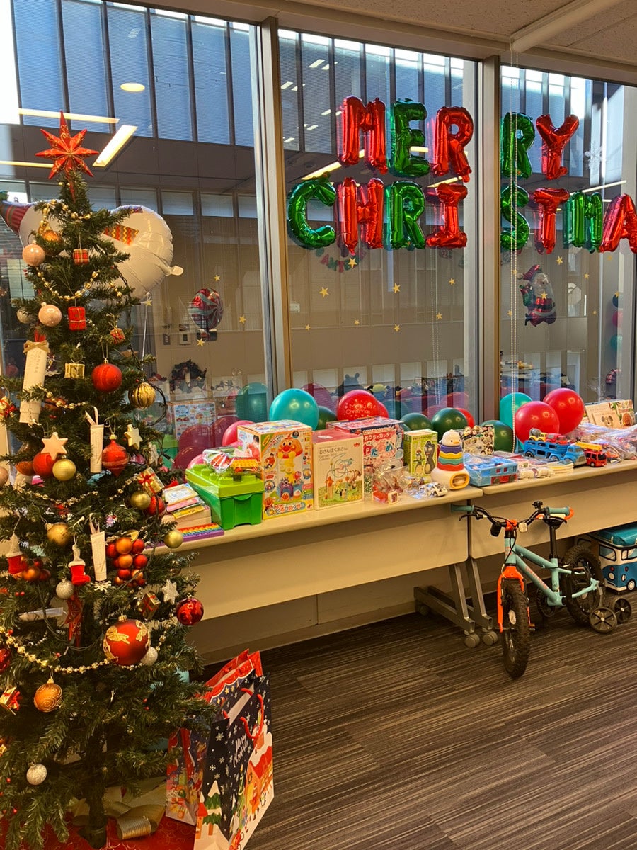 事前に全社チャットや朝礼を通じて、使用しなくなったおもちゃや衣類の提供を呼びかけたところ、300点以上の品が集まりました。そのお家に眠っていたアイテムを、クリスマスプレゼント用にラッピングなどし、新たな子供のもとへと届けるエコイベントです。