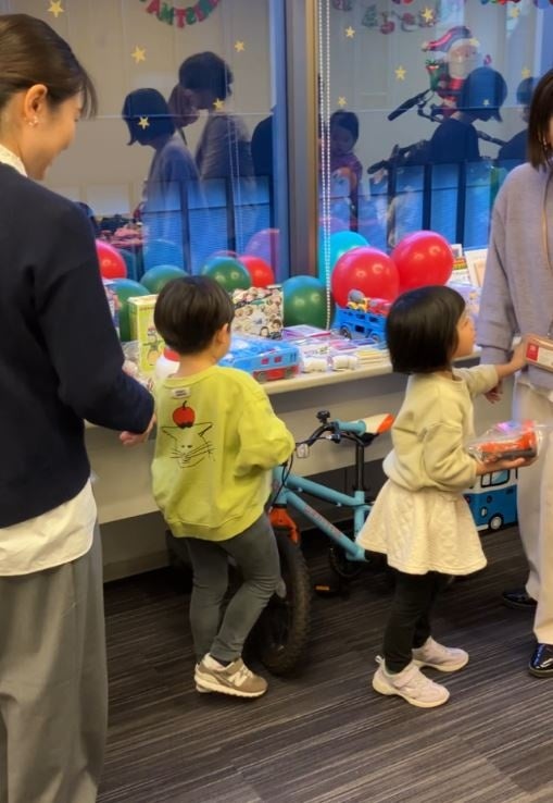 オリジナルブランド「マナラ」「アールオム」「アクナル」を製造・販売する株式会社ランクアップでは、社員の8割が女性、さらに半数が育児をしながら働くママ・パパ社員です。少子化対策に寄与する育児サポートの面でも独自の福利厚生を導入するなど、多数の取り組みを行っています。今年も、子どもが使わなくなったおもちゃや衣類をリユースし、必要としている別の子どもに「お下がりのプレゼント」を提供する社内イベント『継承クリスマス』を2024年12月23日(月)に開催いたしました。昨年に続き、社員の子どもたちからも多くの笑顔が見られ、盛況なイベントとなりました。