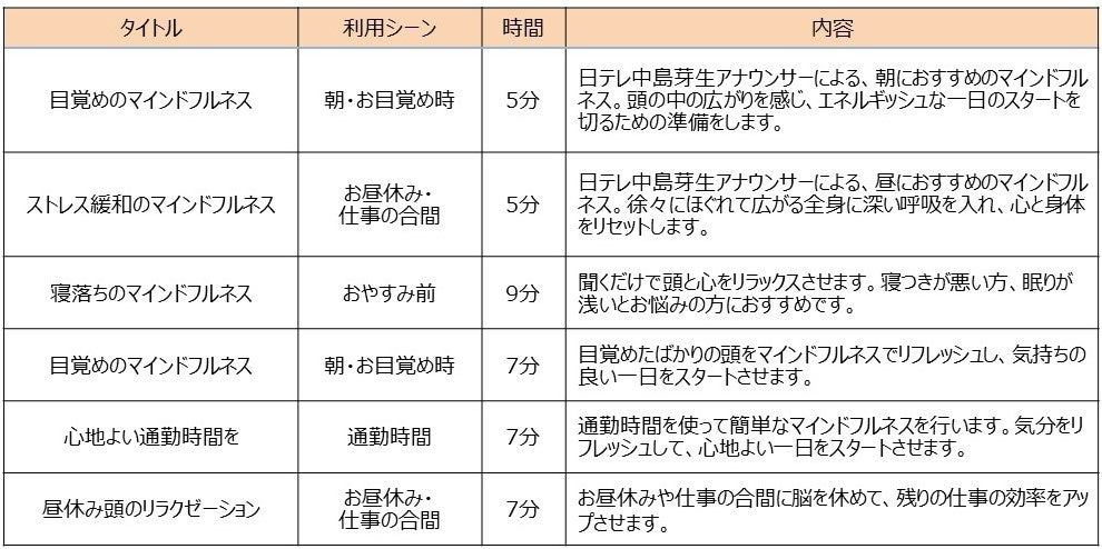 ・多くの企業ニーズに対応する、マインドフルネスやリラクセーションをメインとした講座ラインナップです。