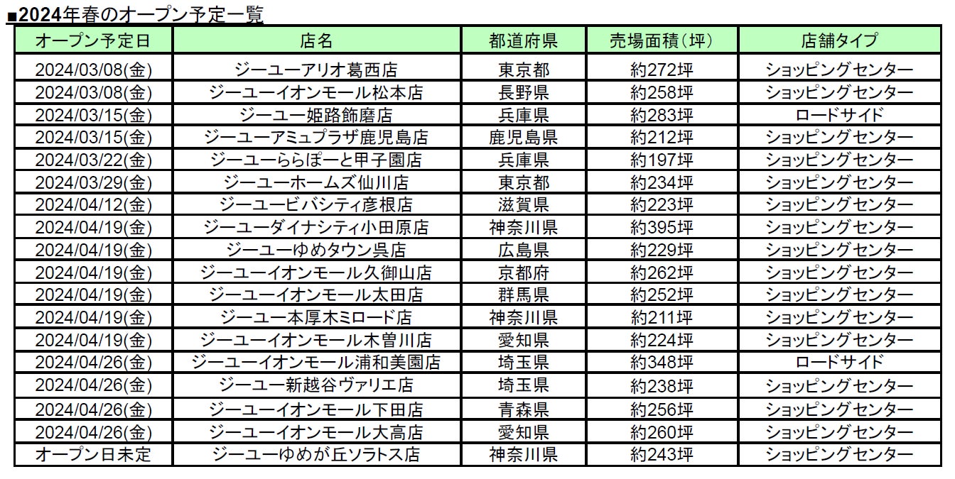 「YOURFREEDOM自分を新しくする自由を。」がブランドメッセージのジーユーは、2024年春に全国各地で18店舗をオープンいたします(増床2店舗含む)。