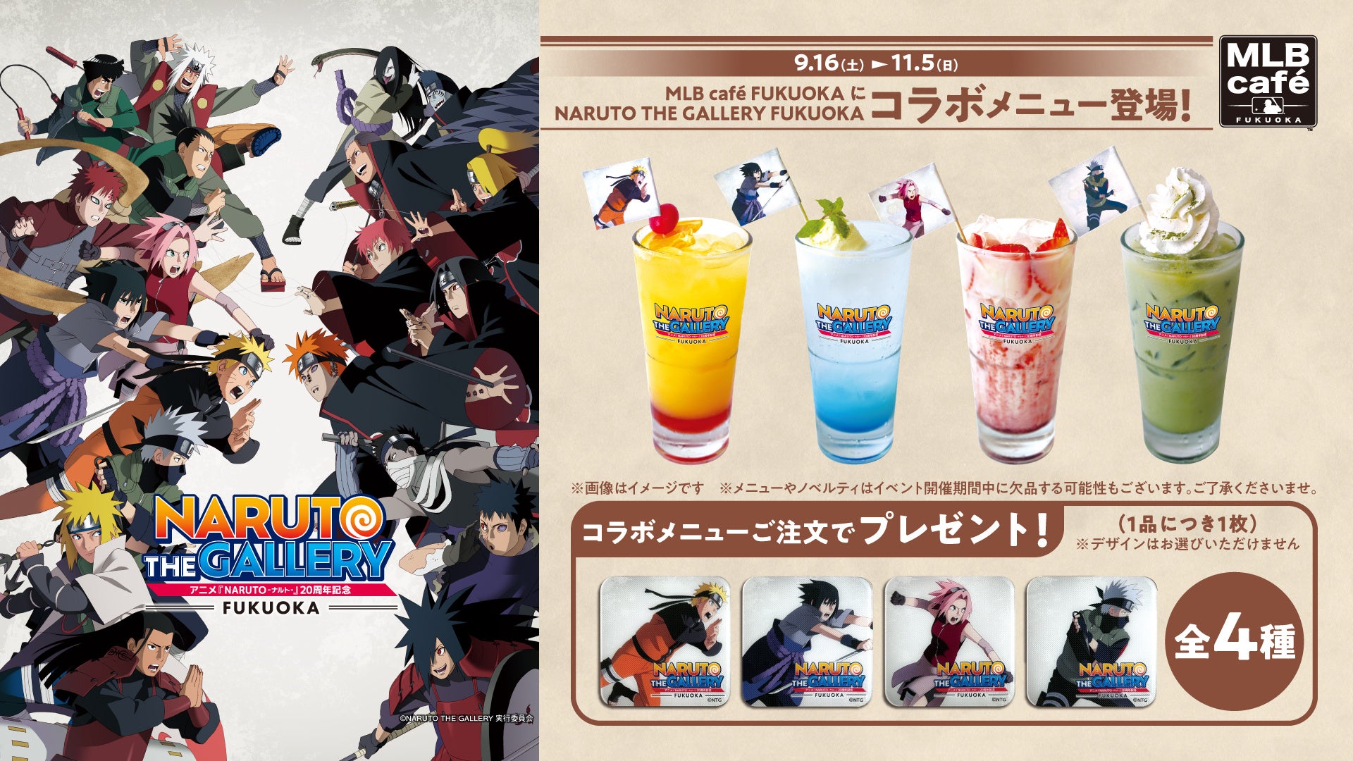 BOSS E・ZO FUKUOKA 3F「MLB café FUKUOKA」では、「NARUTO THE GALLERY FUKUOKA」コラボメニューを9月16日(土)から販売!4種のオリジナルドリンクと購入者特典(全4種ランダム)をお楽しみください!
