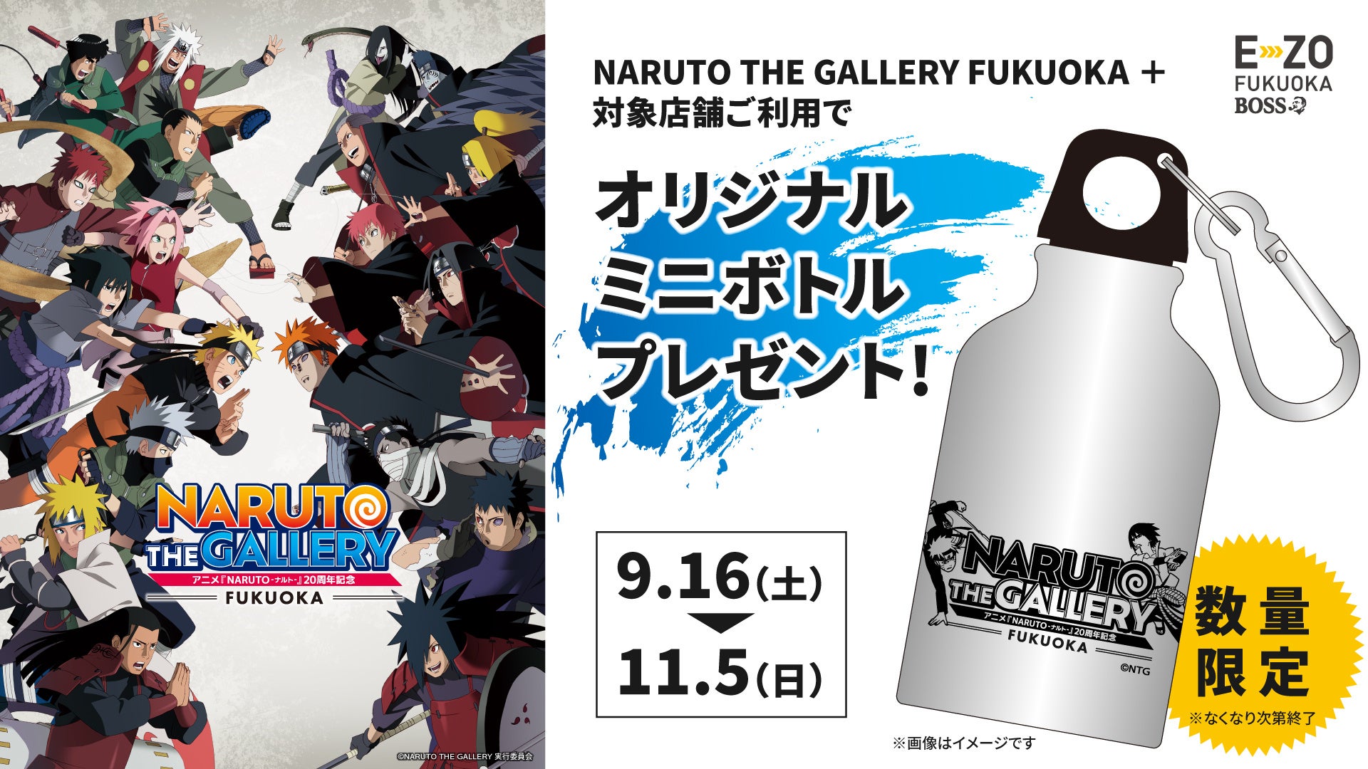 プレゼント条件 | 以下①②をご掲示で【非売品】オリジナルミニボトルをおひとつプレゼント ①「NARUTO THE GALLERY FUKUOKA」入場チケット ②実施期間内のBOSS E・ZO FUKUOKA内対象アトラクションチケットまたは 3F MLB café FUKUOKA のレシート(1,000円以上) いずれか1枚 |