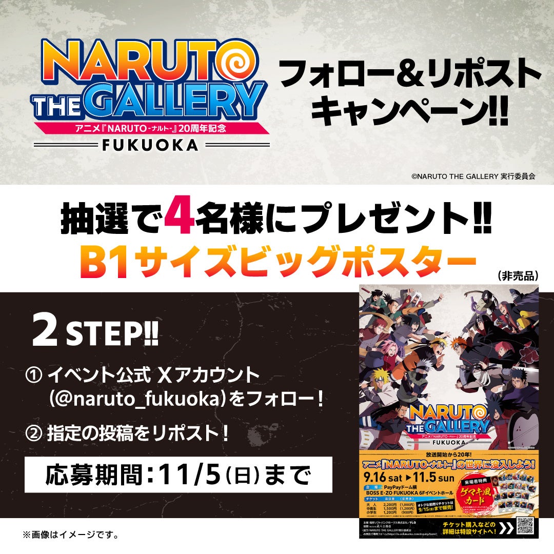 ※当選通知は当選者にDM(ダイレクトメッセージ)でご連絡いたしますので、 NARUTO THE GALLERY FUKUOKA公式アカウントを必ずフォローしていただきますようお願いいたします。