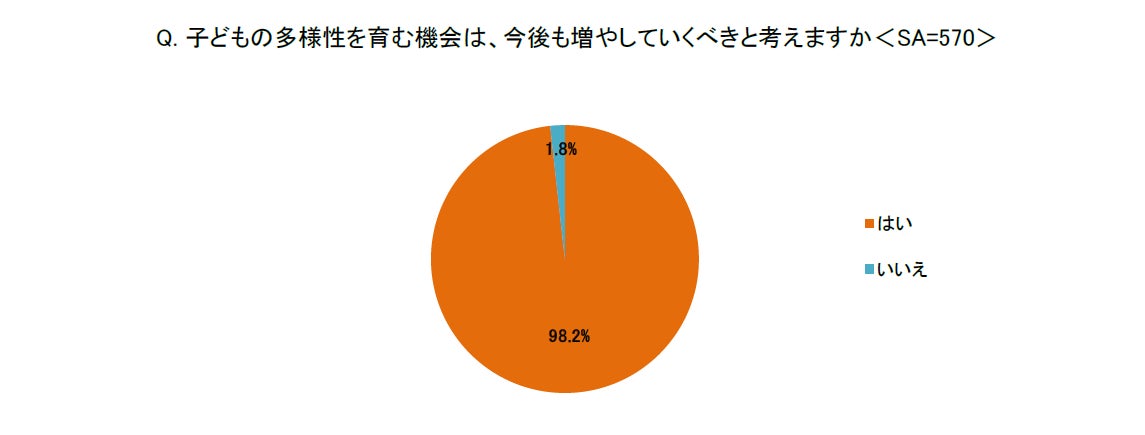 9割以上の親が多様性を育む重要性を理解し、今後も機会を増やしていくべきだと考えていることが判明!
