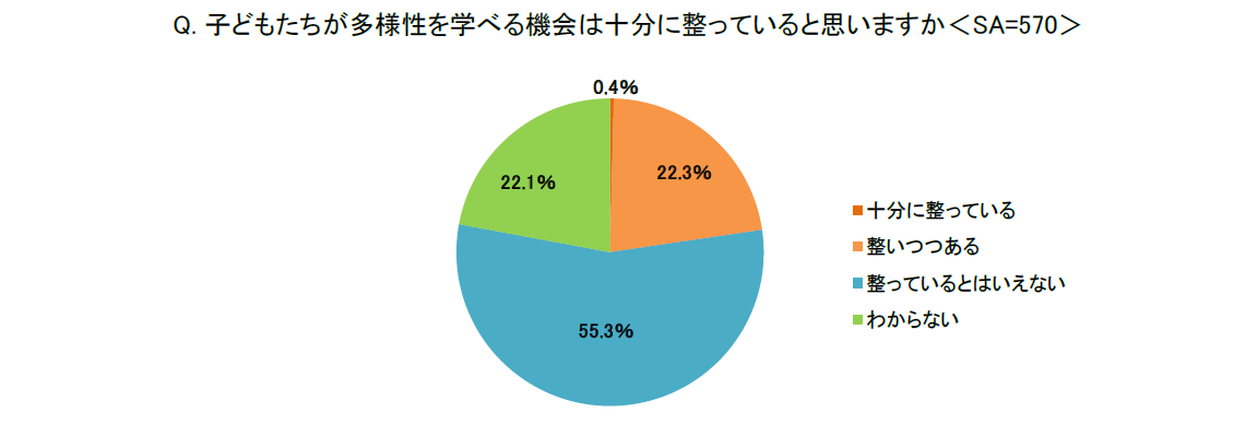 2.子どもたちが多様性を学べる機会が整っていると考える親は約2割に留まる!