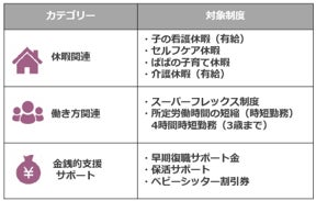 ・配偶者が出産する男性従業員を対象にした「ぱぱの子育て休暇」(10日/分割取得も可)