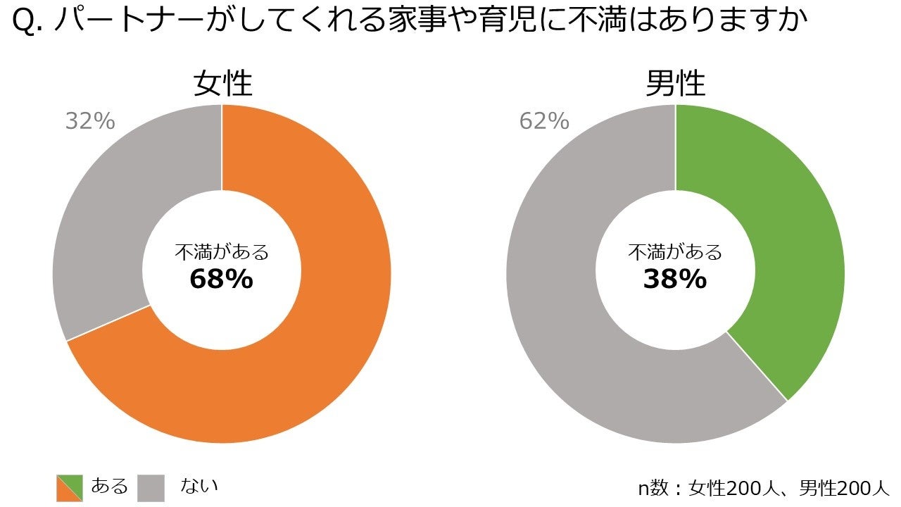 - 働く女性の約7割はパートナーの働く男性に不満を抱えており、男性との差は2倍以上