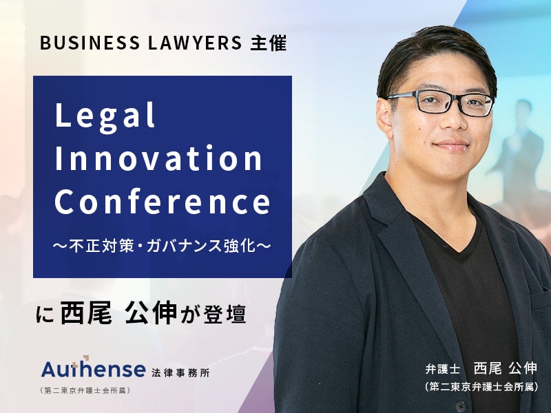 7月8日(火)に弁護士ドットコム株式会社が運営する企業法務ポータルサイト「BUSINESS LAWYERS」が主催するカンファレンス「Legal Innovation Conference 〜不正対策・ガバナンス強化〜」に、当事務所の弁護士 西尾 公伸が登壇いたします。