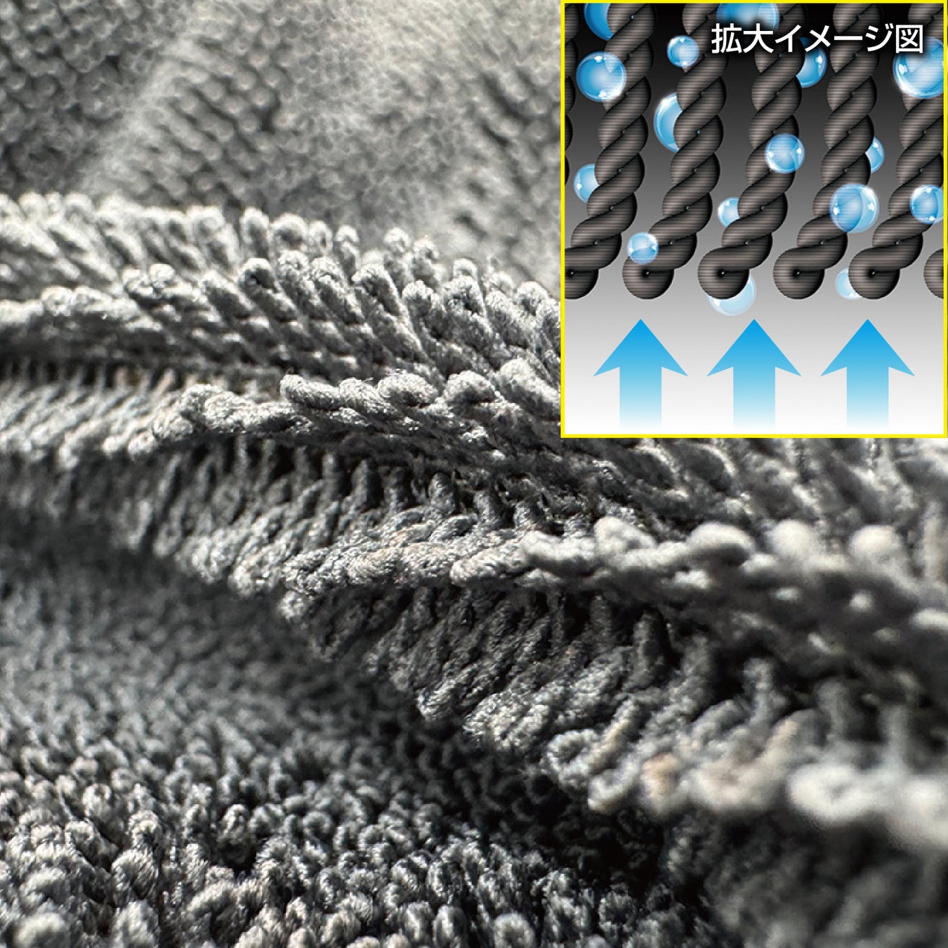 吸収力に優れた“ツイストループ”構造のマイクロファイバークロスを採用。洗車時に実用的なサイズ展開・乾きやすい片面メッシュ仕様の「超吸水ゼロタオル」シリーズ(3サイズ、5品番)を新発売。