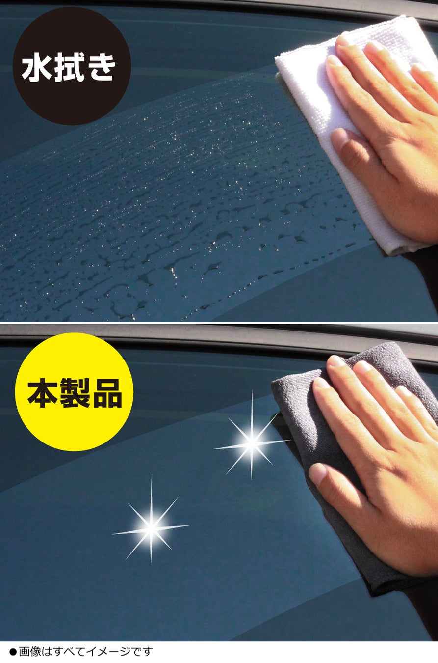 汚れを水なしで落とせる点が好評の高性能マイクロファイバークロス(サイズは約30×23cm)を付属。洗浄液で浮かせた汚れをしっかりかき取る(上画像:右)