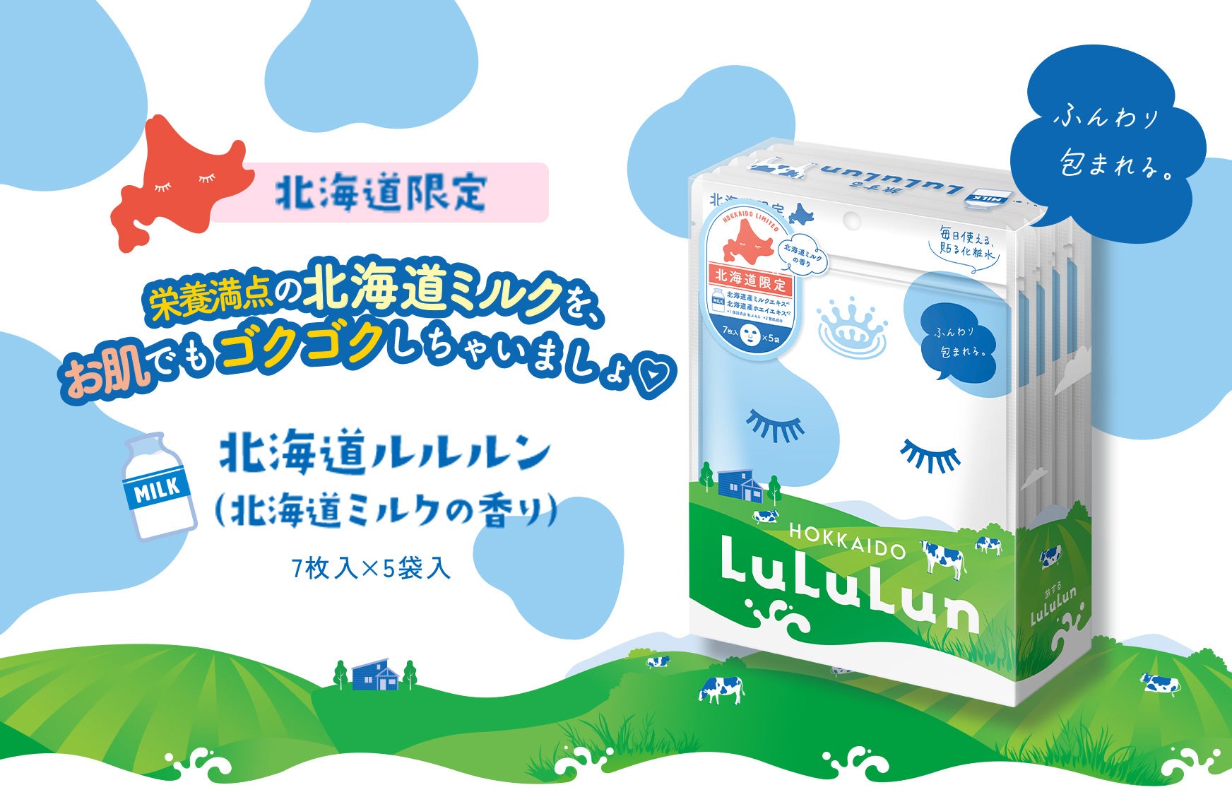 6年連続フェイスマスクブランドNo.1のルルルンから、北海道限定で『北海道ルルルン(北海道ミルクの香り)』が誕生。豊かな大地で育まれた、北海道の恵みを贅沢にお肌にも。