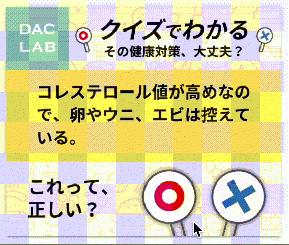 宣伝したい商材の魅力や機能・特徴を伝える際に適したフォーマットです。クイズ形式のため、広告接触者の興味を引きやすくなっており、認知施策として活用可能です。