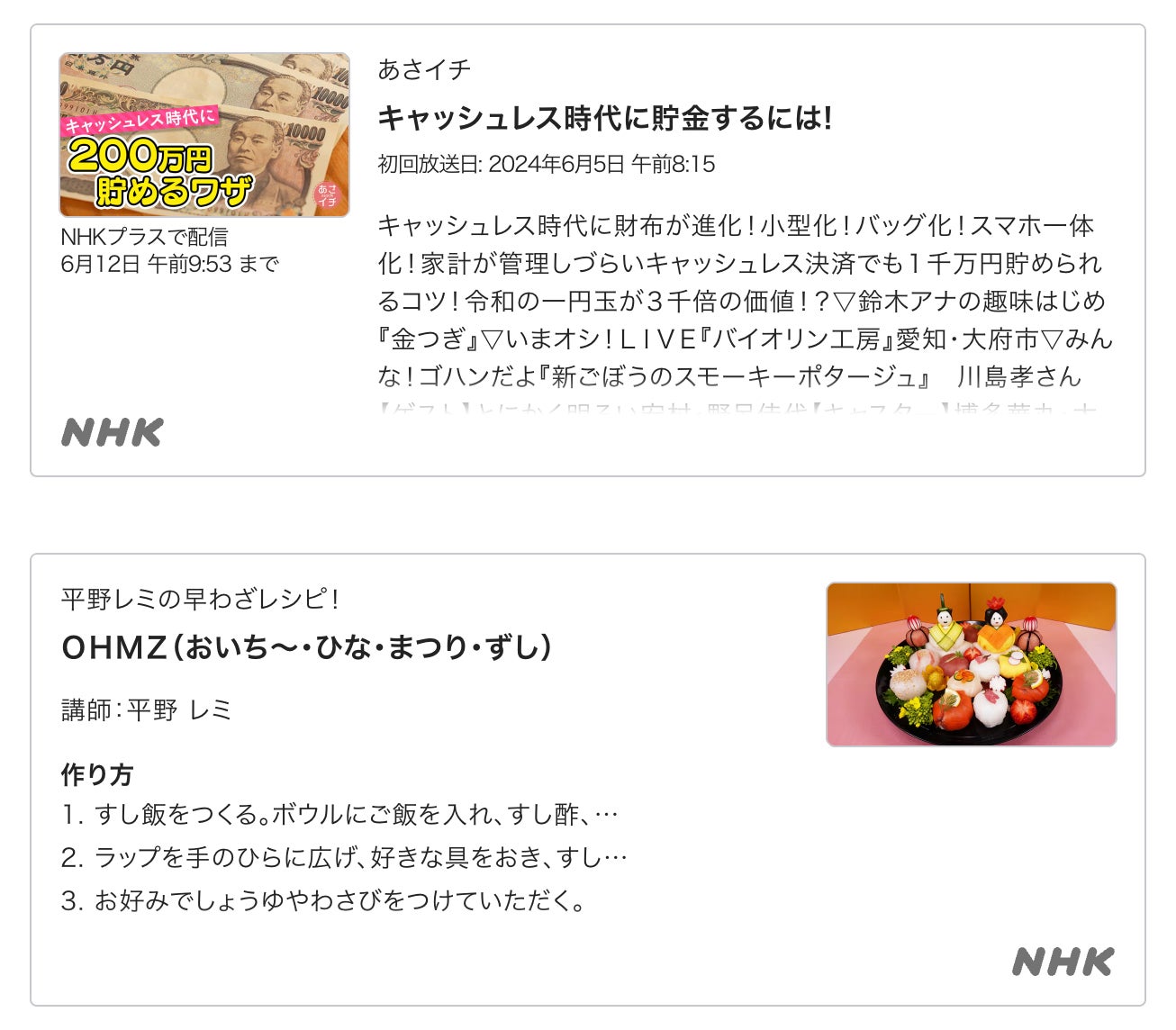 ・NHKの各種番組情報