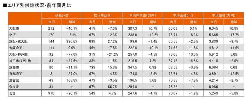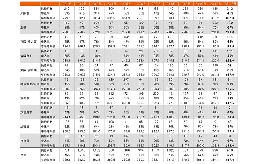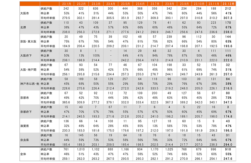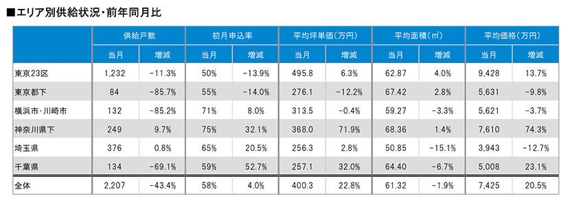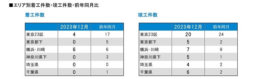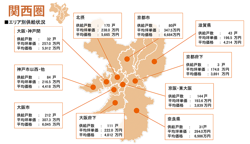 集計対象エリアは首都圏及び関西で、それぞれのエリア別相場情報、需給動向、着工件数等を集計しました。