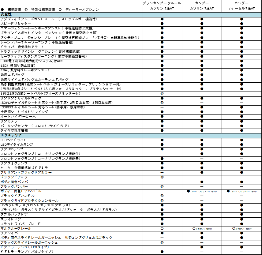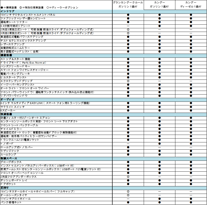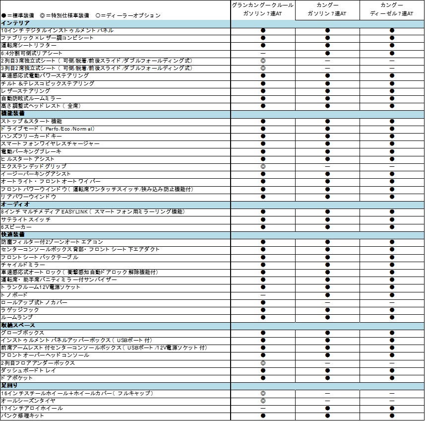 ルノー カングー、ルノー グランカングー共通の主な装備・機能