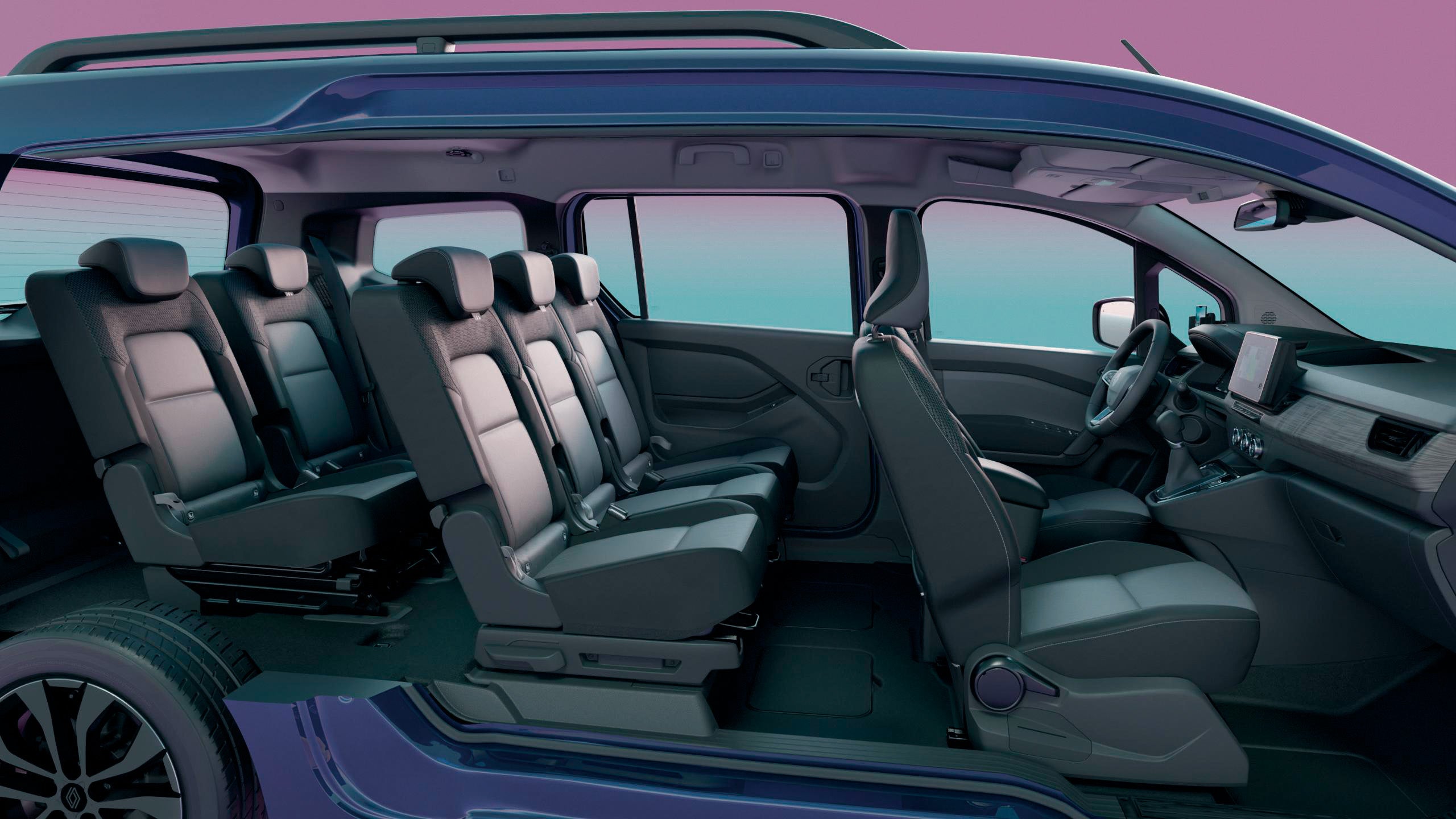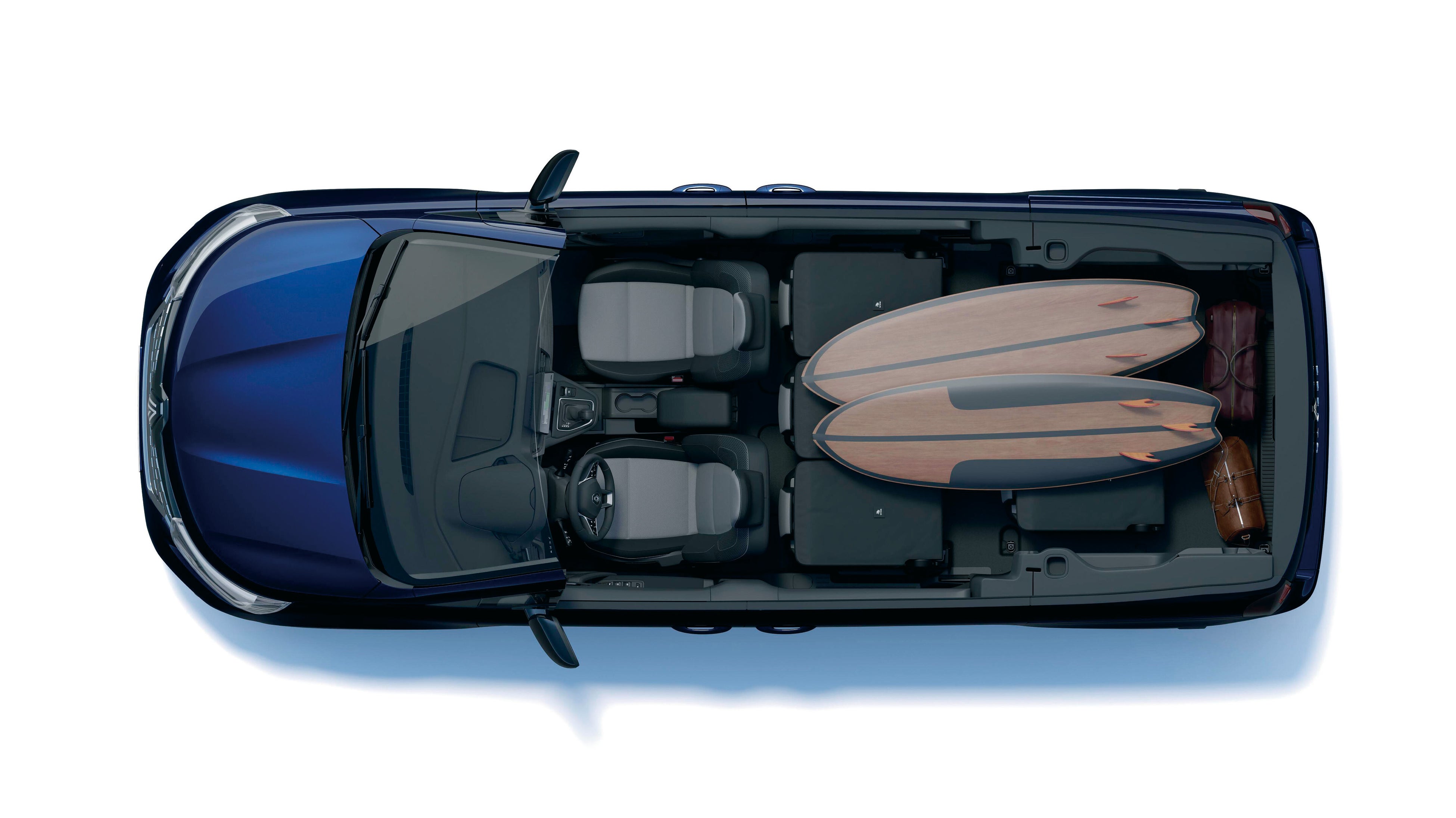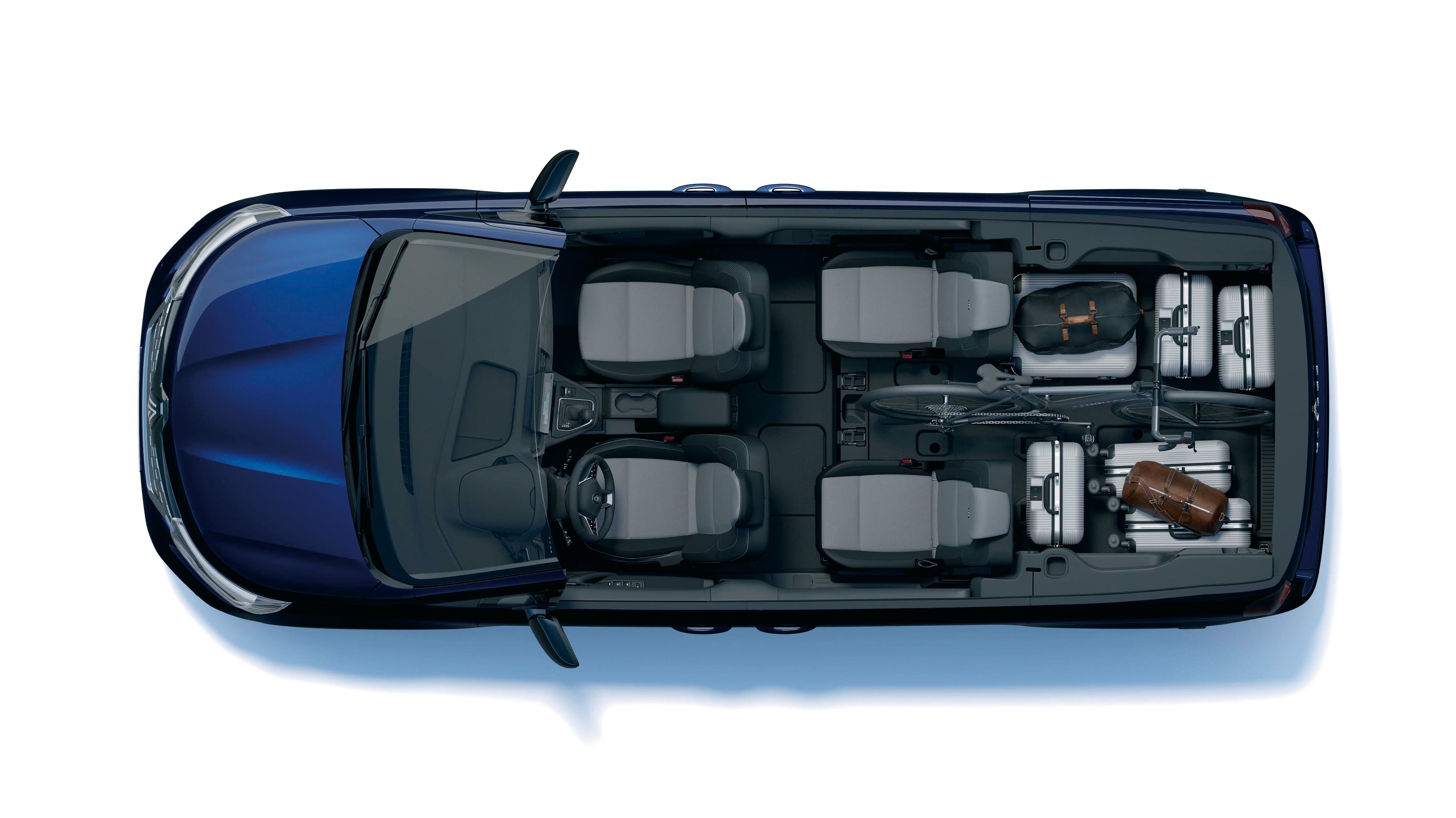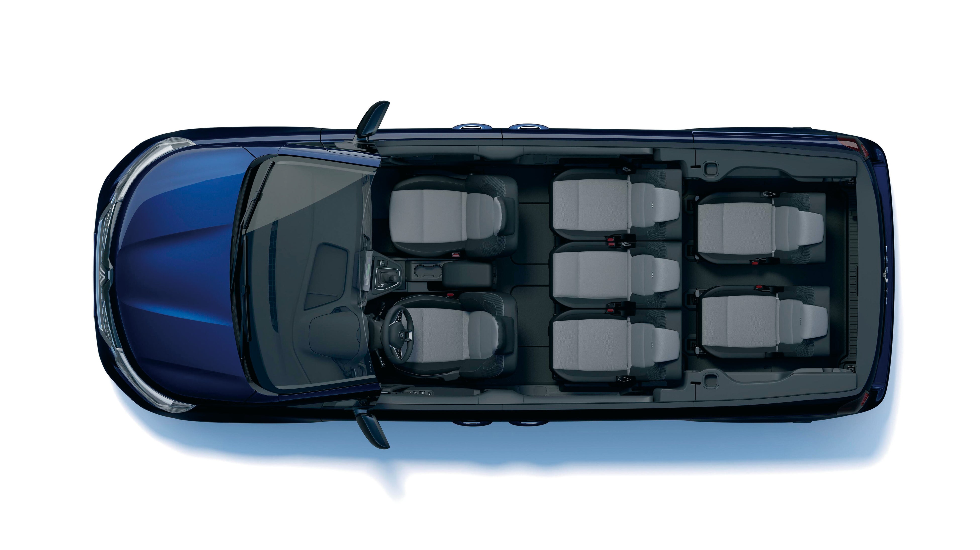 ルノー グランカングー クルールは、ルノー カングーに比べ全長は420㎜、ホイールベースも390㎜長くなり、大きく広くなった室内には独立した3列/7シートを装備しています。2列目、3列目のシートは、スライド・折り畳み・跳ね上げ・取り外しが可能で、シートアレンジのバリエーションは1,024通りに上ります(一部走行時に利用できないパターンがあります)。