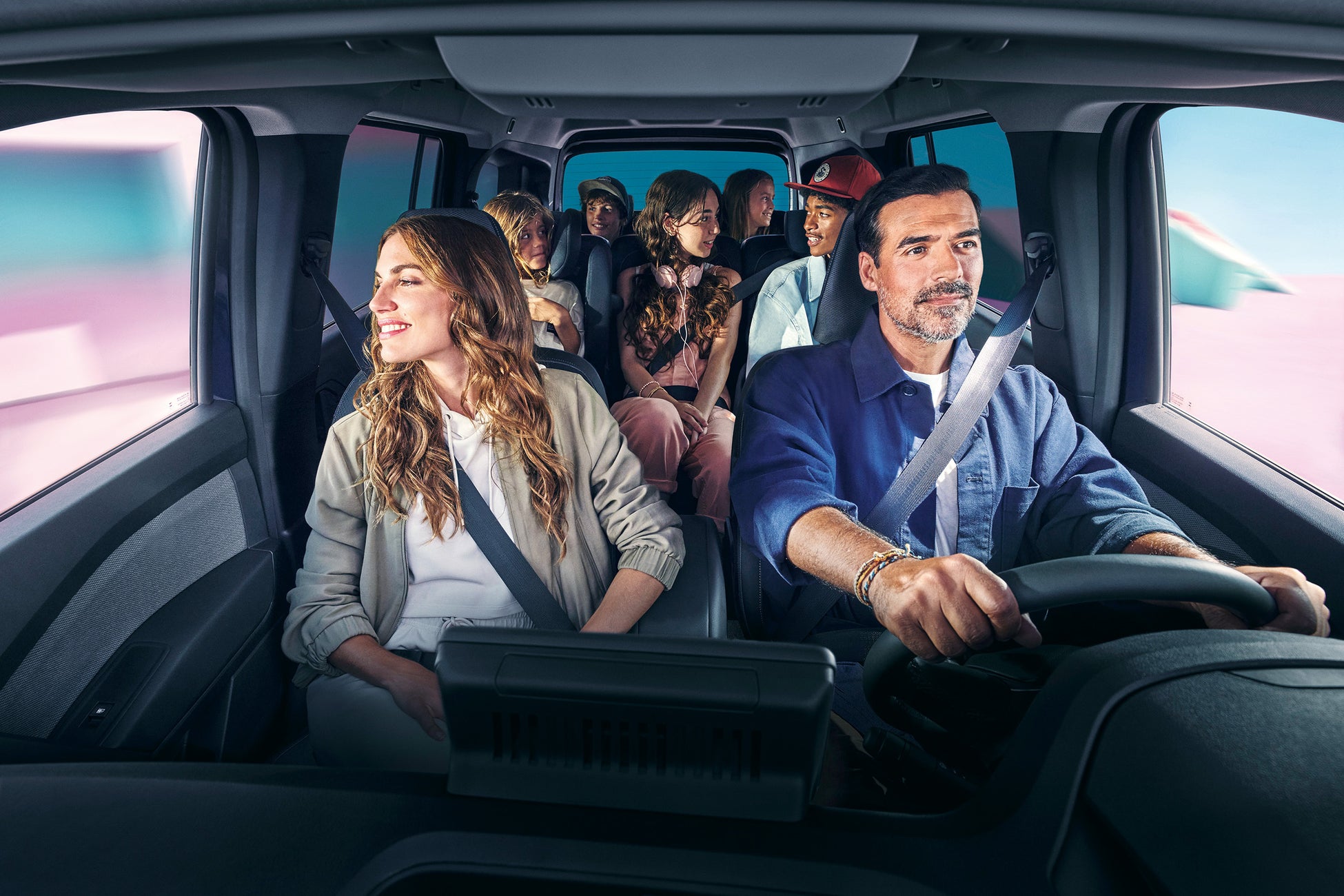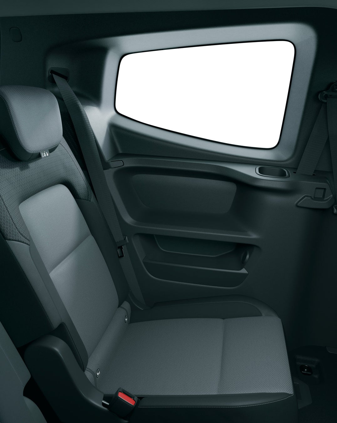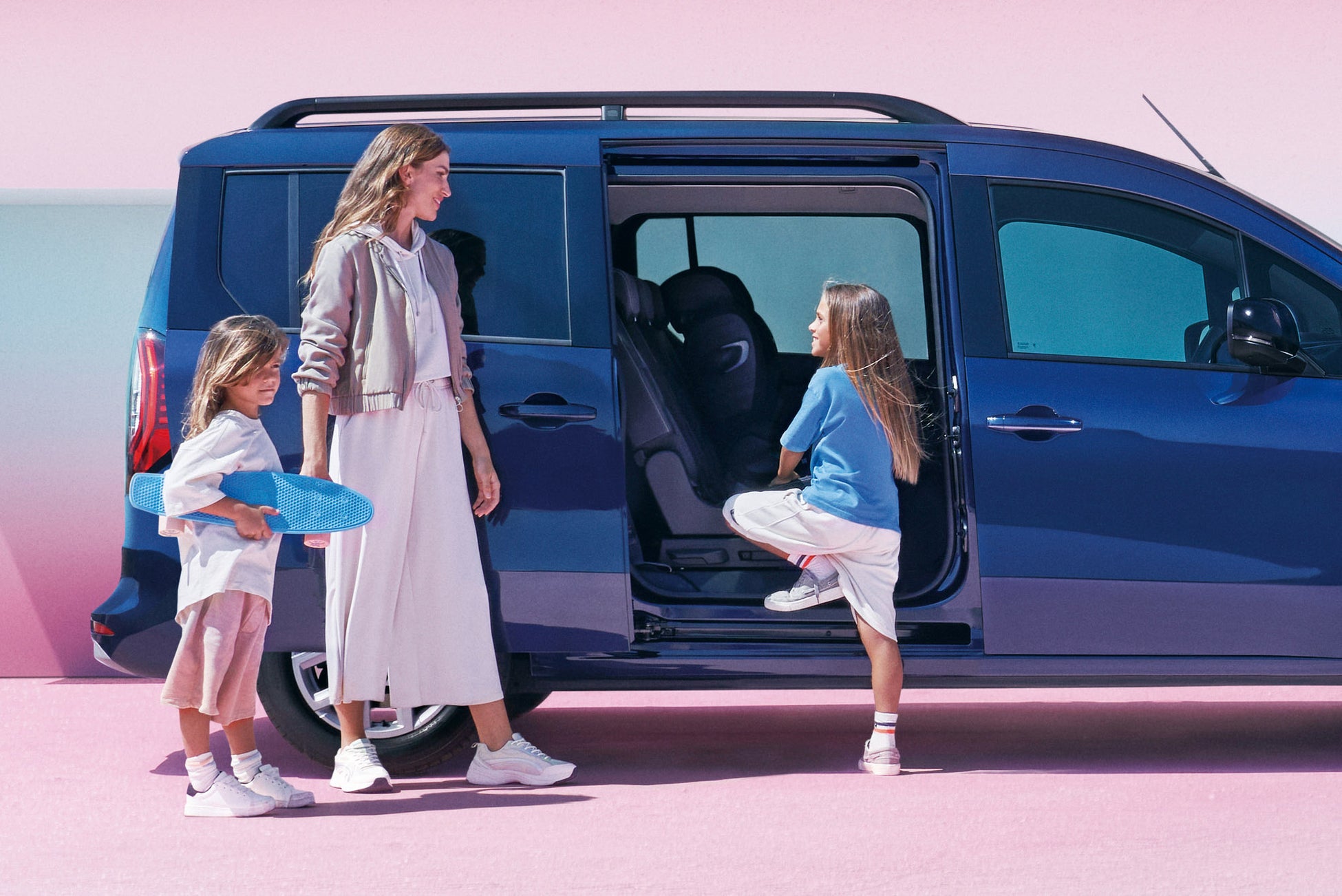ホイールベースが延ばされたことにより、スライドドア部が新たに設計され、開口幅がルノー カングーに比べて180㎜広い830㎜となりました。開口幅が広がったことにより、2列目はもちろん、3列目シートへ乗り込む際に2列目のシートを跳ね上げても十分なスペースがあり、乗り降りが容易に行えます。また、ホイールベースの延長は、走行安定性や乗り心地の向上にも寄与しています。