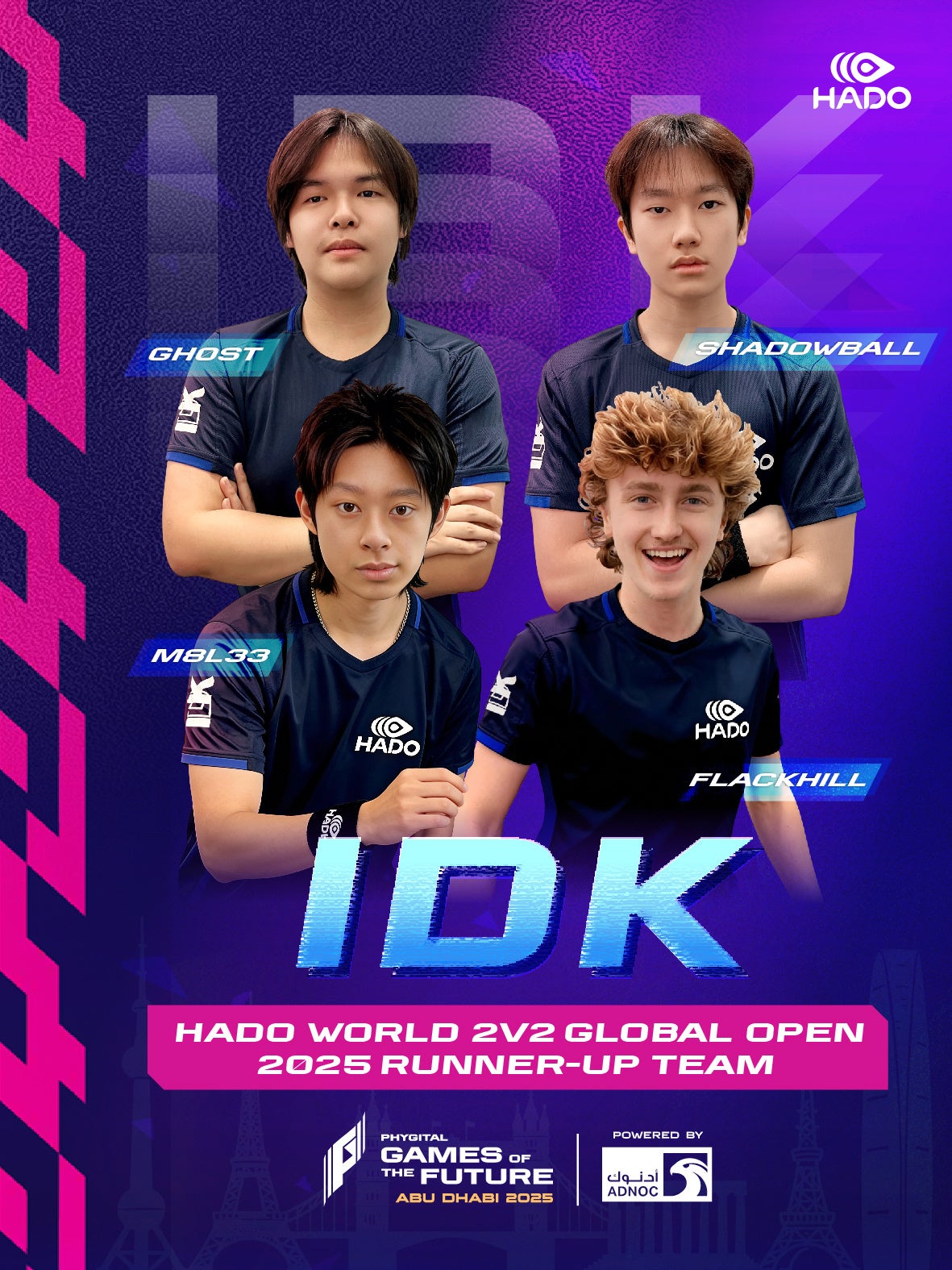 IDKは、イギリスにおいて最も支配的かつ歴史あるHADOクラブのひとつです。2019年の設立以来、すべてのUK Championshipを制覇し、国内リーグおよび地域大会でも数シーズンにわたり優勝を重ねてきました。2025年4月以降、選手たちは HADO USAアンバサダー も務めています。
