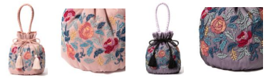 人気の「巾着バッグ」もサテンの上にチュール生地を重ねたデザインで涼しげな装いに