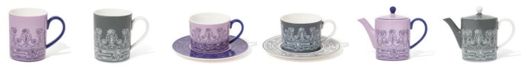 ラインで描かれたバラ柄が映えるティーアイテム