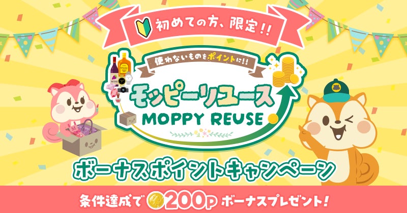 対象期間中に初めて「モッピーリユース」をご利用いただく方を対象に、条件を達成することで200Pを追加付与いたします。 |
