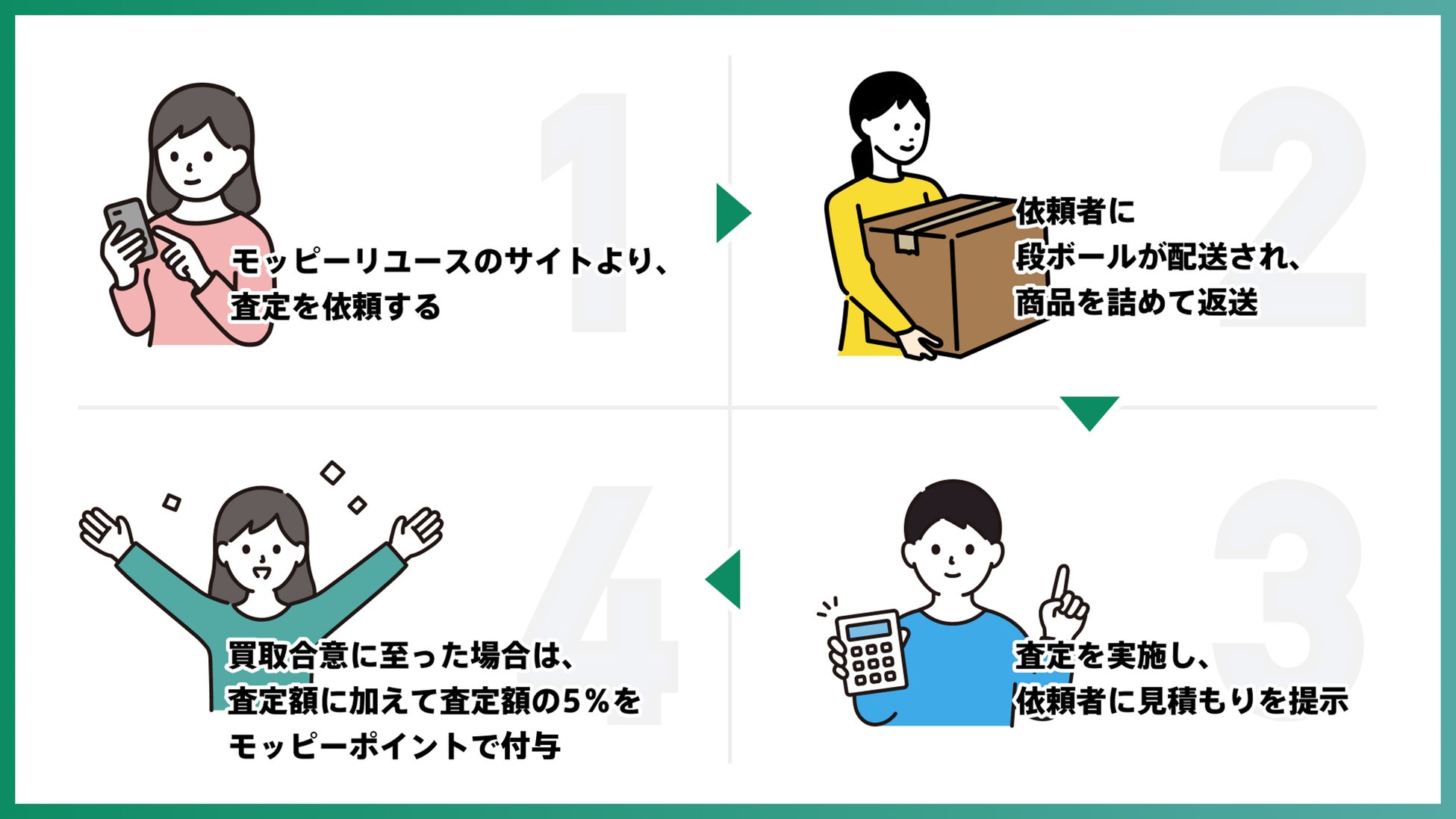 2024年10月から株式会社蔵王(本社:大阪府大阪市、代表取締役社長:今泉 優哉、以下蔵王)との業務提携を通じて、宅配買取サービスのご利用でポイントが貯まる「モッピーリユース」の提供を開始いたしました。会員が買取に合意した場合は査定金額の5%をモッピーポイントで付与するサービスです。不要になったものを無駄なく手放しながら、ポイントも獲得できるお得な体験を、より多くの方にお届けするため、今回のキャンペーンを実施いたします。