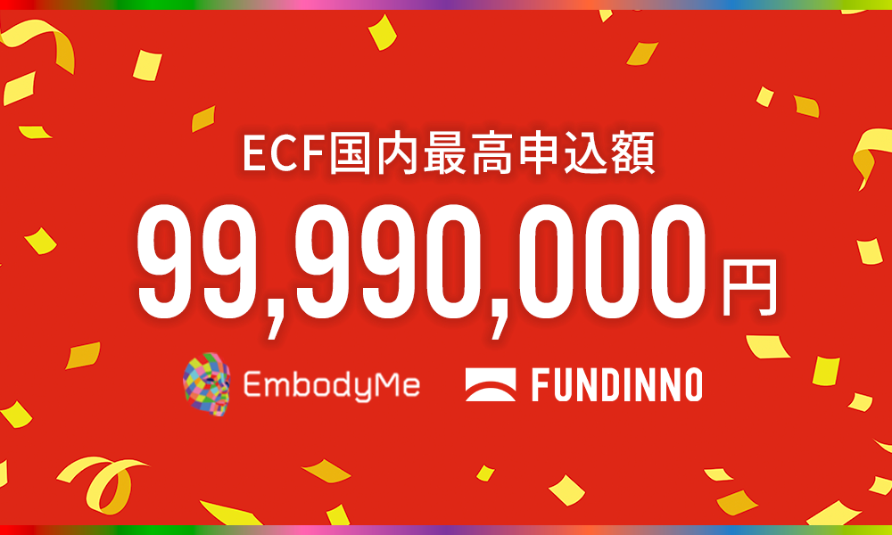 【国内最高額】EmbodyMe社がファンディーノで9,999万円の投資申込到達。募集開始約5時間半で約450名の投資家が応募