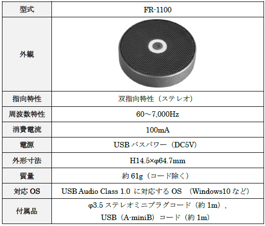 高指向性小型マイクロフォンの新バージョン「FR-1100」を開発、販売
