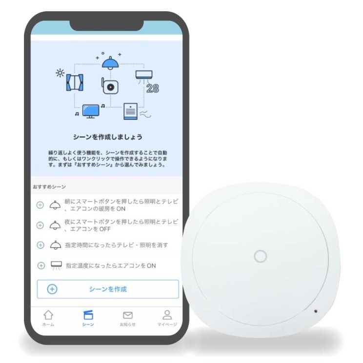 アプリには、よく使われる家電操作を登録した「おすすめシーン」を準備しています。