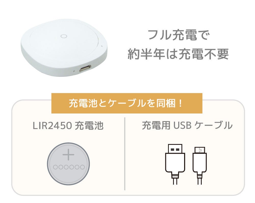 本製品はUSB充電式のため、面倒な電池交換は不要です。
