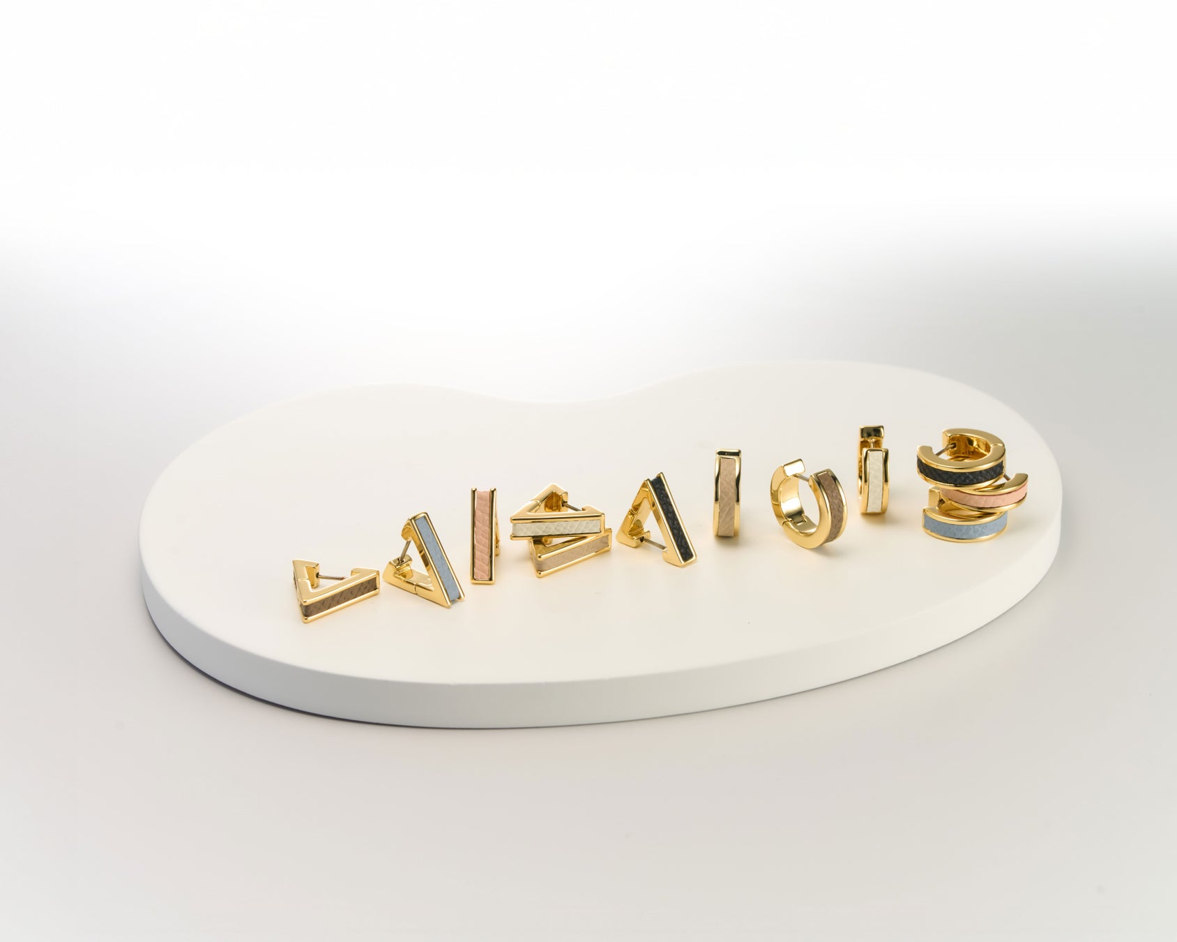 エレガントな印象を与えるラウンド型と、シャープでモダンな印象のトライアングル型の2型のピアス、そしてカジュアルからフォーマルまで、幅広いシーンにマッチするバングルの3アイテムをご用意。同シリーズで合わせることで、より洗練されたスタイルを楽しめます。