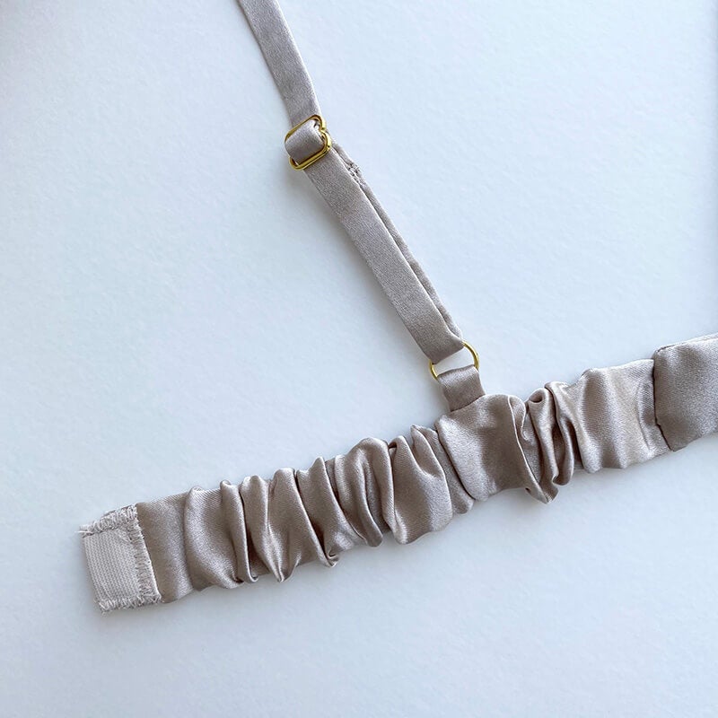 肌に優しく高機能な天然繊維であるシルク100%のサテンを使用したランジェリーコレクション。カップにはたっぷりタックをとり、バストをふわりと包み込む。アンダーゴムはシルクサテンでくるんでいて、肌当たりも滑らかです。長く大切に着て欲しい。そんな想いを込めて細部まで拘りぬかれた1着。なるべく縫い代が見えないように縫製されています。肩紐はアジャスターが付いていて長さ調節可能です。パッドポケット付きなので気分に応じてパッドの着脱可能。オリジナルのRegular(レギュラー)パッドをご使用いただけます。(別売り)