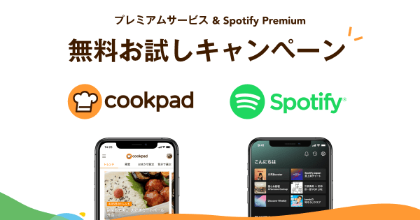 キャンペーン特設サイト:https://cookpad.com/premium_service/web_lps/spotify_campaign