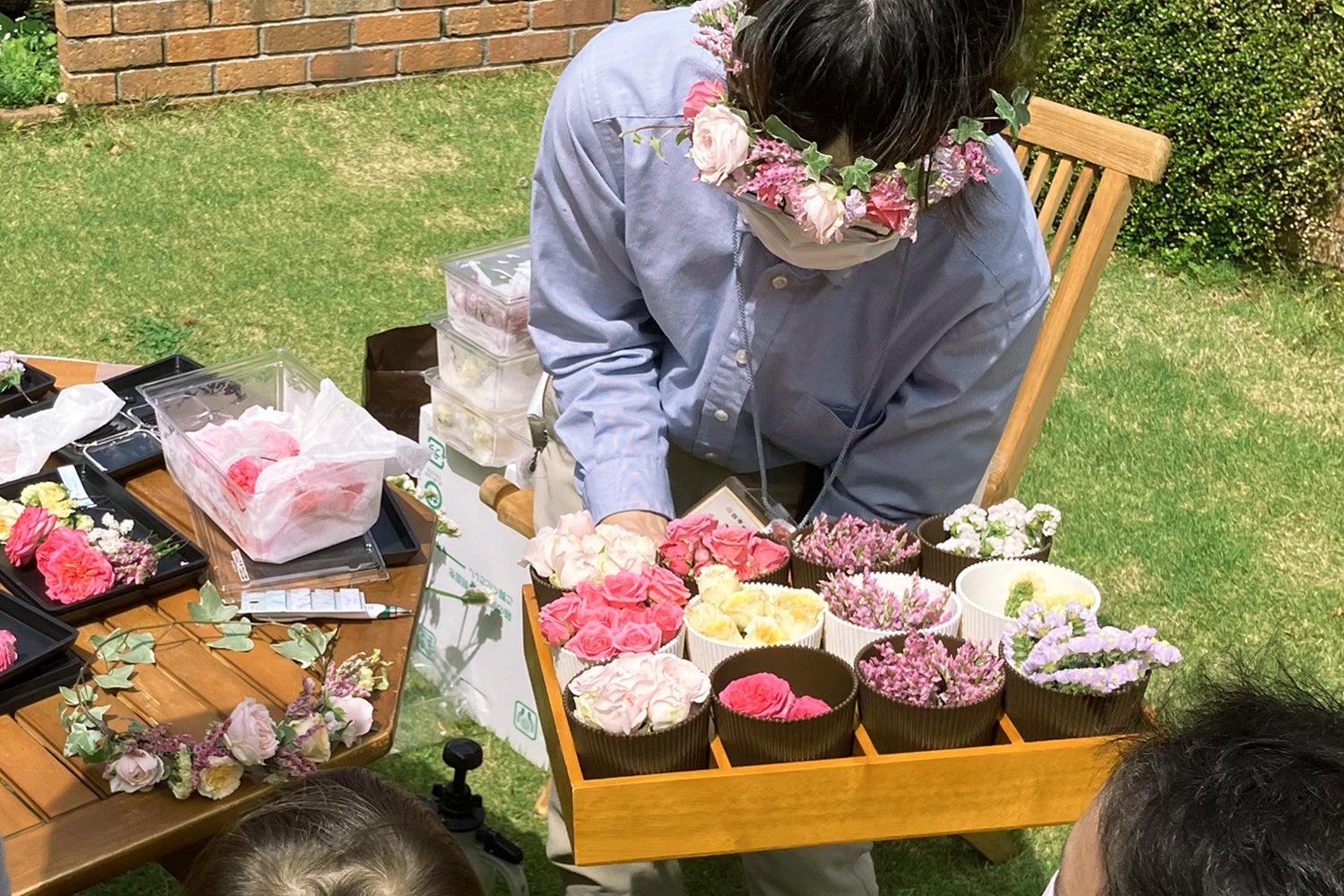 日本を代表するホテルのウェディングや装飾で活躍した第一園芸のフローリスト中川桃が、お子様に合わせて可愛らしく咲いたバラを使って花かんむりをお作りします。お子さまとご一緒にぜひお楽しみください。