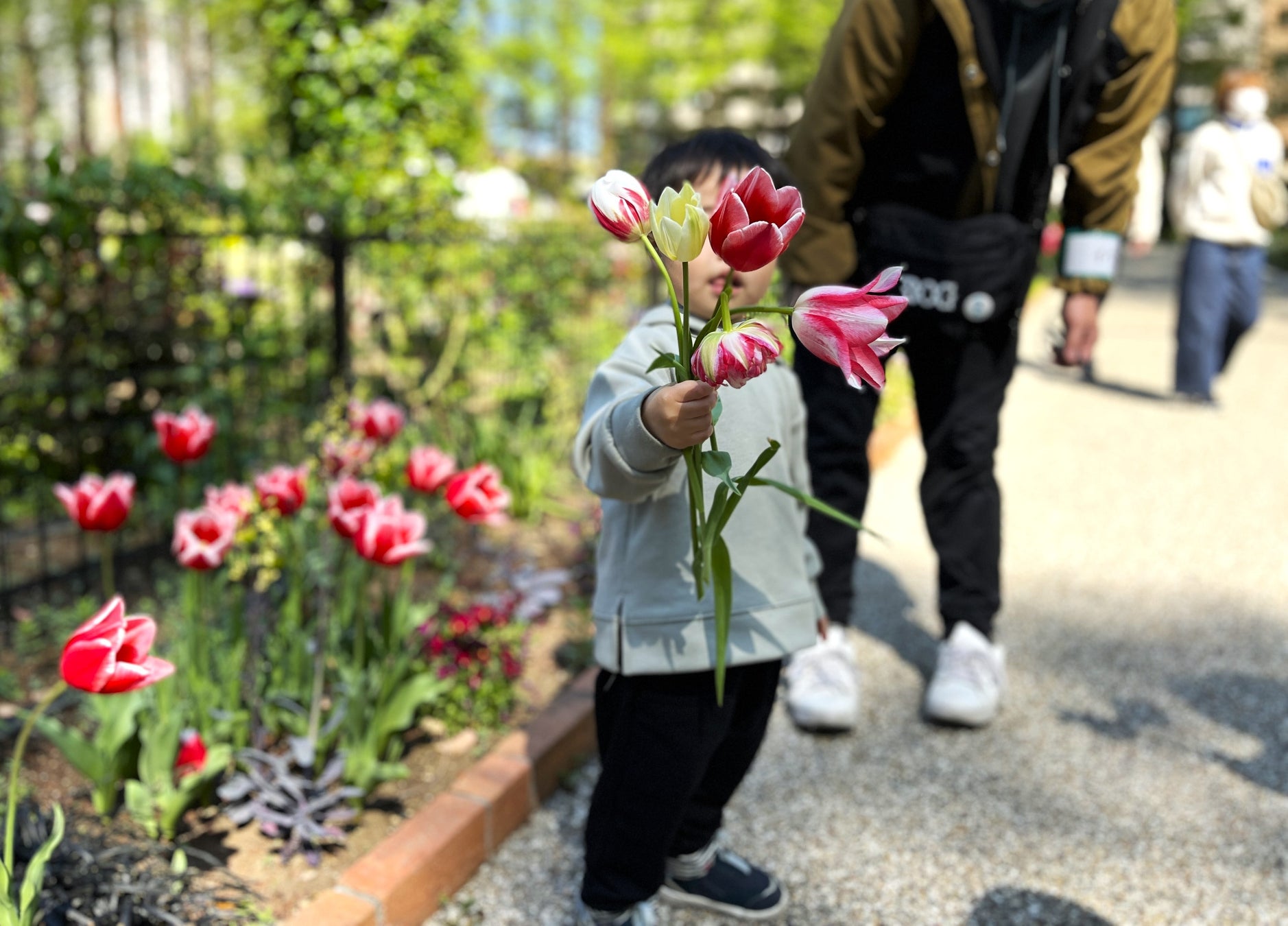 ガーデンに咲いているチューリップを摘みとれる体験型のイベントです。お一人さま10本まで摘みとることができ、摘み取ったチューリップはお持ち帰りいただけます。ご自宅でもぜひお楽しみください。
