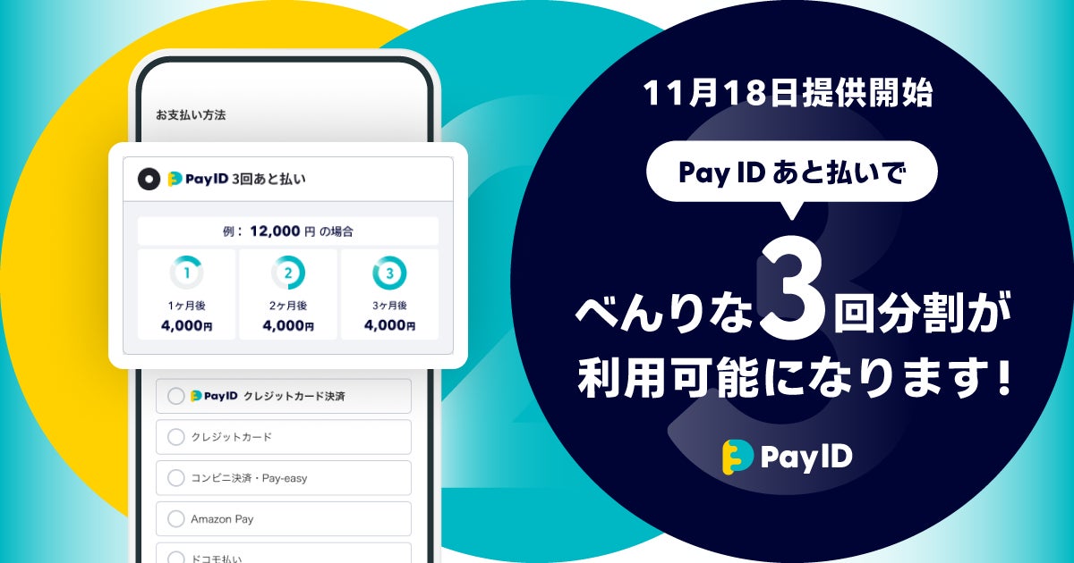 購入者向けショッピングサービス「Pay ID」が分割手数料無料のBNPL「Pay ID 3回あと払い」を11月18日(月)より提供開始