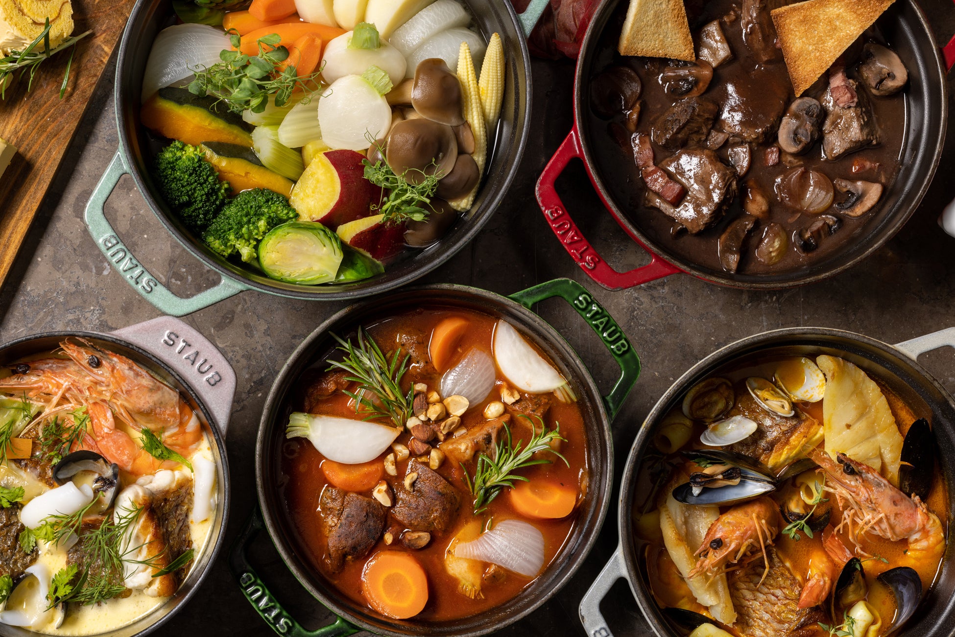 伝統的なビストロ料理をスタイリッシュにアレンジしたオールデイ ダイニング「フレンチ キッチン」では、フランス各地に根付く煮込み料理をメインにご提供する「秋のココットディナー」がスタートします。メインは、白身魚や海老、アサリなどのシーフードをブイヨンと魚介の出汁で煮込んだクリームベースの食べるスープ「シーフードナージュ」、ビーフを野菜と一緒に赤ワインで煮込んだブルゴーニュ地方の郷土料理「ビーフ ブルギニョン」や、ベジタリアンの方もお楽しみいただけるよう、秋野菜をふんだんにつかった「ベジタブルポトフ」など5品の中から、お好きなものを1品お選びいただけます。また、デザートは、世界の製菓大会で受賞・優勝歴を誇るペストリーチームによる秋ならではの栗やかぼちゃ、洋梨などをつかった秋スイーツをブッフェ形式で、お好きなものをお好きなだけお召し上がりいただけます。厳選された旬の食材でつくる、シェフが腕によりをかけた特別なメニューとともに、秋の味覚をお楽しみください。