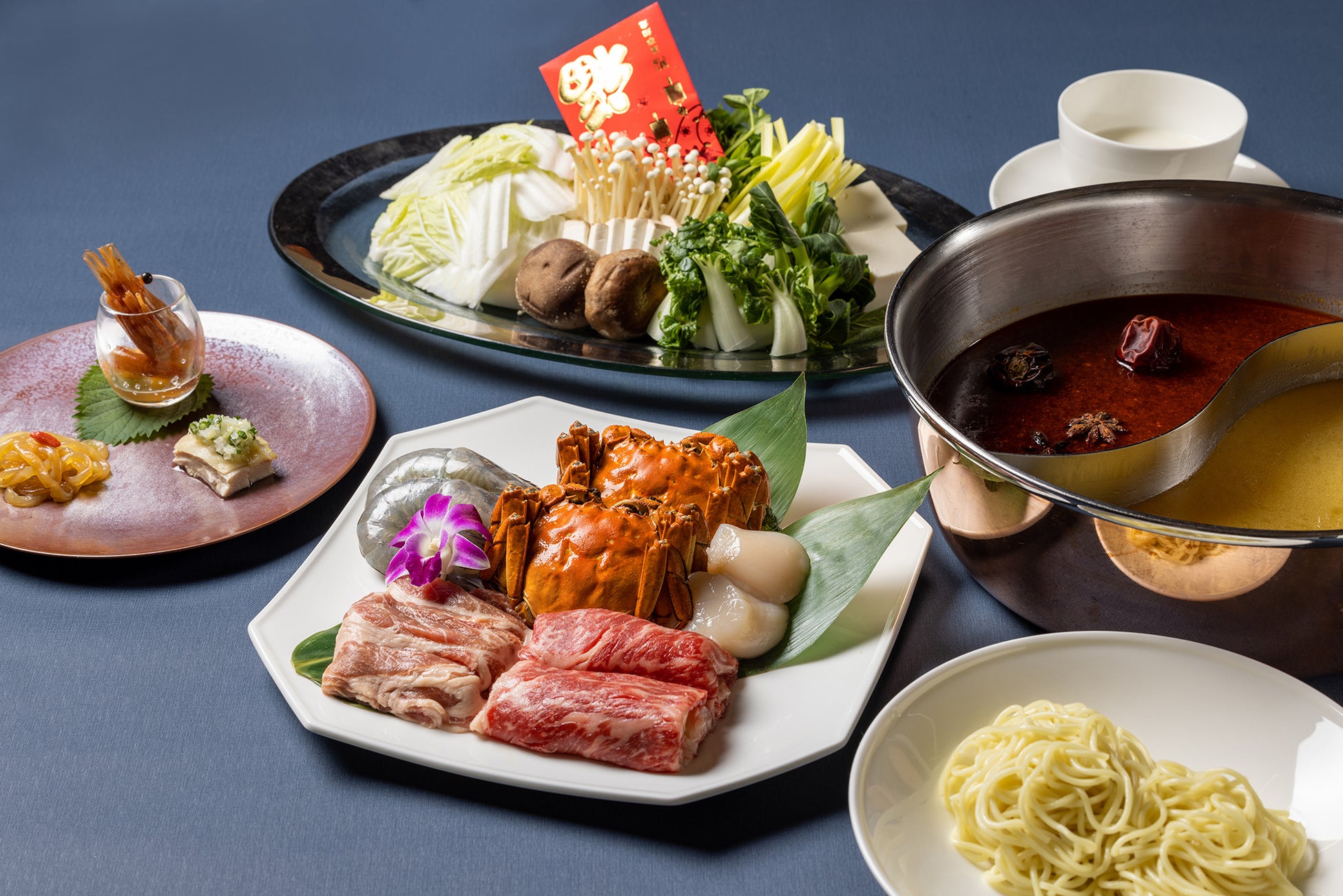 中国各地の代表的な料理や本格的な飲茶をお召し上がりいただける中国料理「チャイナルーム」では、中国で秋の味覚の代表格として名高い上海蟹を贅沢に1名様あたり1杯ずつご用意する火鍋が登場いたします。火鍋に欠かせないスープは、コラーゲンたっぷりの白湯スープと、9種類の香辛料が入った麻辣スープです。具材には、濃厚で奥深い味わいが特徴の上海蟹のほか、キメの細かいサシが入った松坂豚や舌触りが良い十勝ハーブ牛、大ぶりの天使の海老や帆立貝、栄養価も高くヘルシーな3種のキノコ、白菜やチンゲン菜、黄ニラなど国産の野菜がラインナップ。〆には、こだわりのスープを最後までご堪能いただける中華麺もご用意いたします。さまざまな具材の旨味が溶け込んだ、身体も悦ぶ滋味溢れる豊かな味わいを余すことなくご堪能ください。