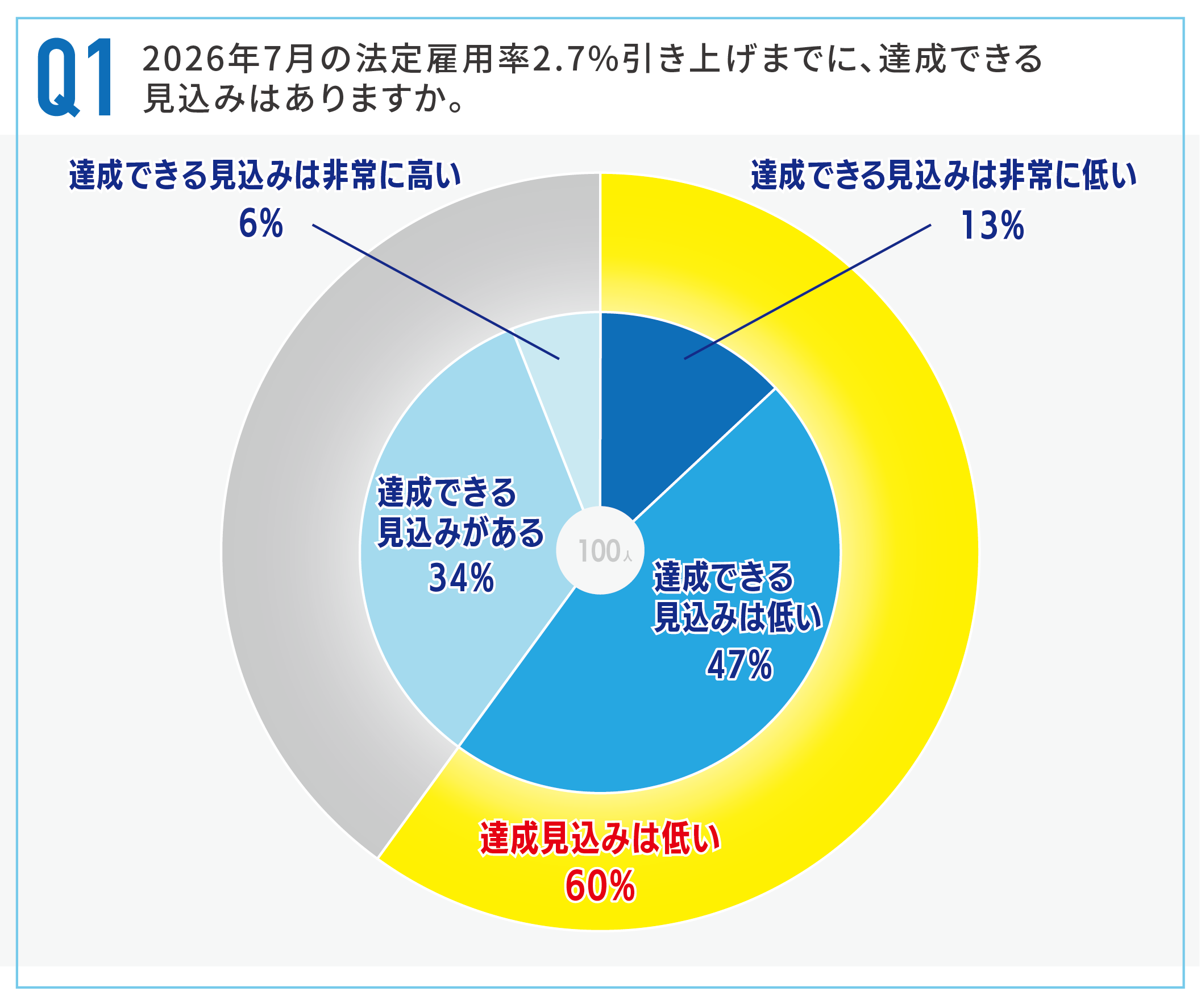 1…法定雇用率2.7%達成に不安を抱える企業は60%