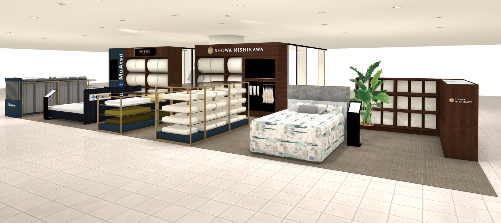 広々とした新しい空間では、より選びやすく多様な寝具を取り揃え、皆様をお迎えいたします。ぜひ新しい売場でのショッピングもお楽しみください。