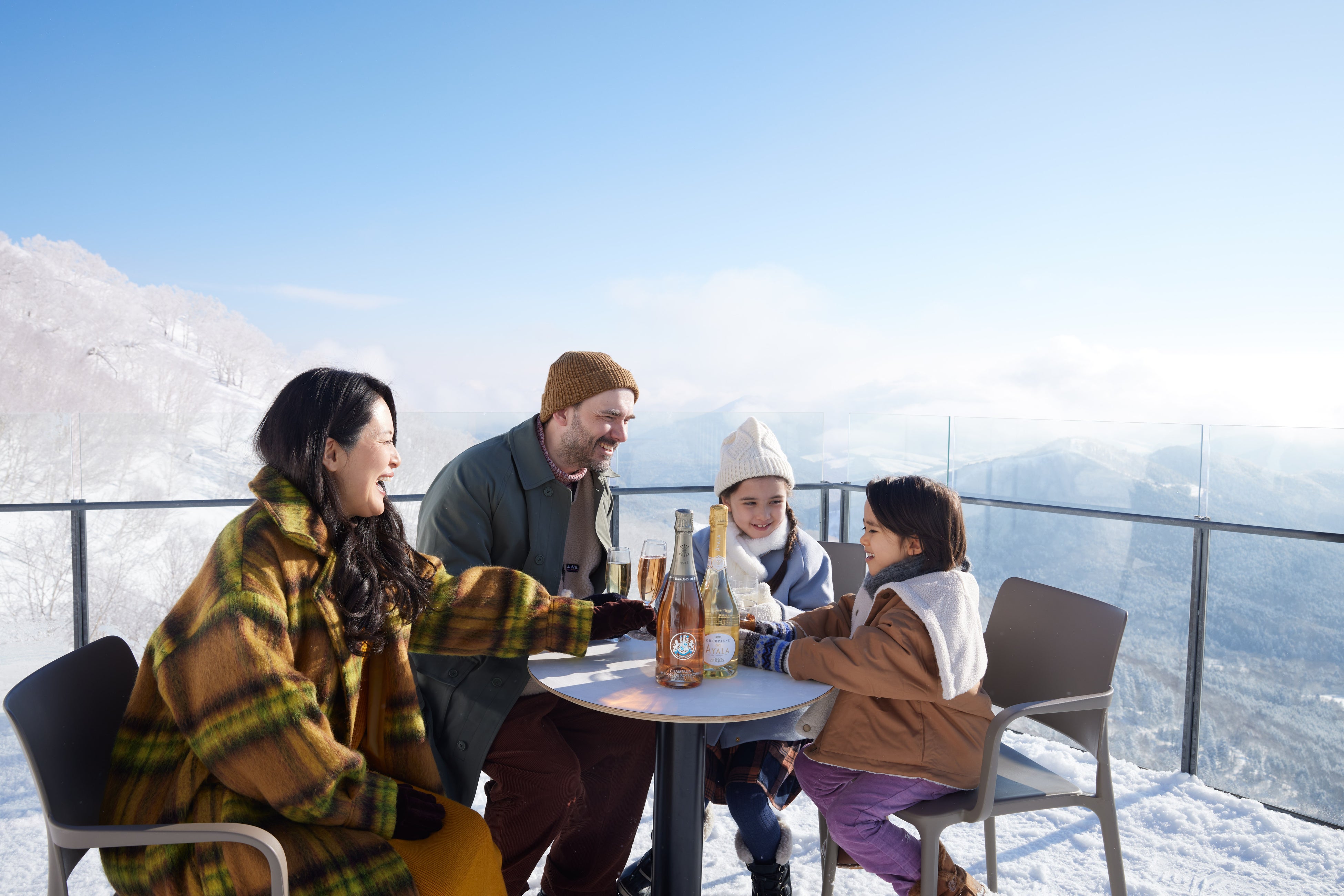 当リゾートが位置する占冠(しむかっぷ)村では、1~2月の最低気温が氷点下30度(*)に達する日もあります。絶景シャンパンテラスがオープンする3月以降は、最高気温が10度以上になる日もあり、暖かくなり始める時期です。このイベントでは日がよく当たる展望デッキで、友人や家族と一緒に標高1,088mから雪山の絶景を眺めながら、優雅な時間を過ごしていただきたく、絶景シャンパンテラスの実施に至りました。