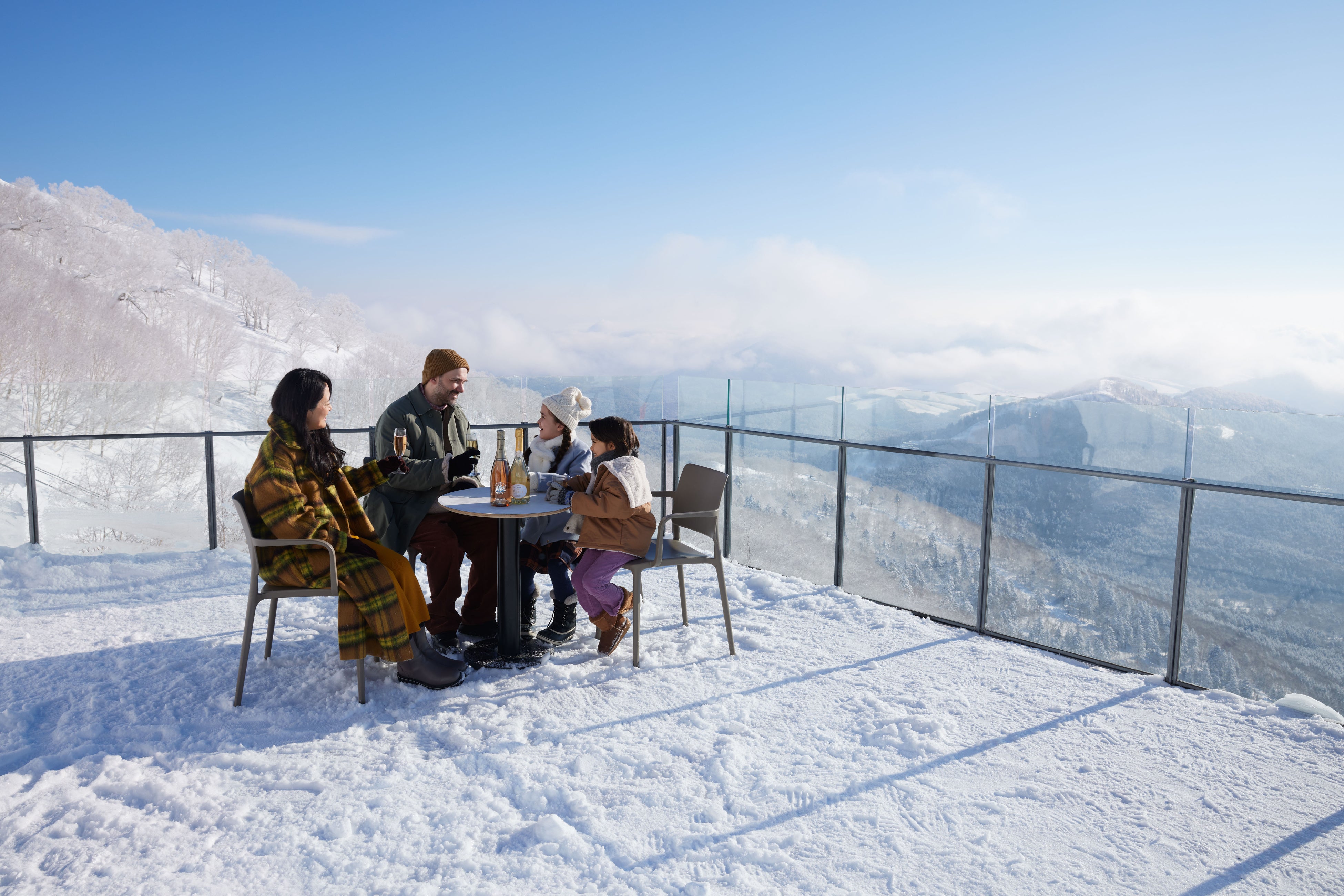 【トマム】標高1,088mから雪山の絶景とシャンパンを優雅に堪能できる「絶景シャンパンテラス」オープン|期間:2024年3月1日〜31日