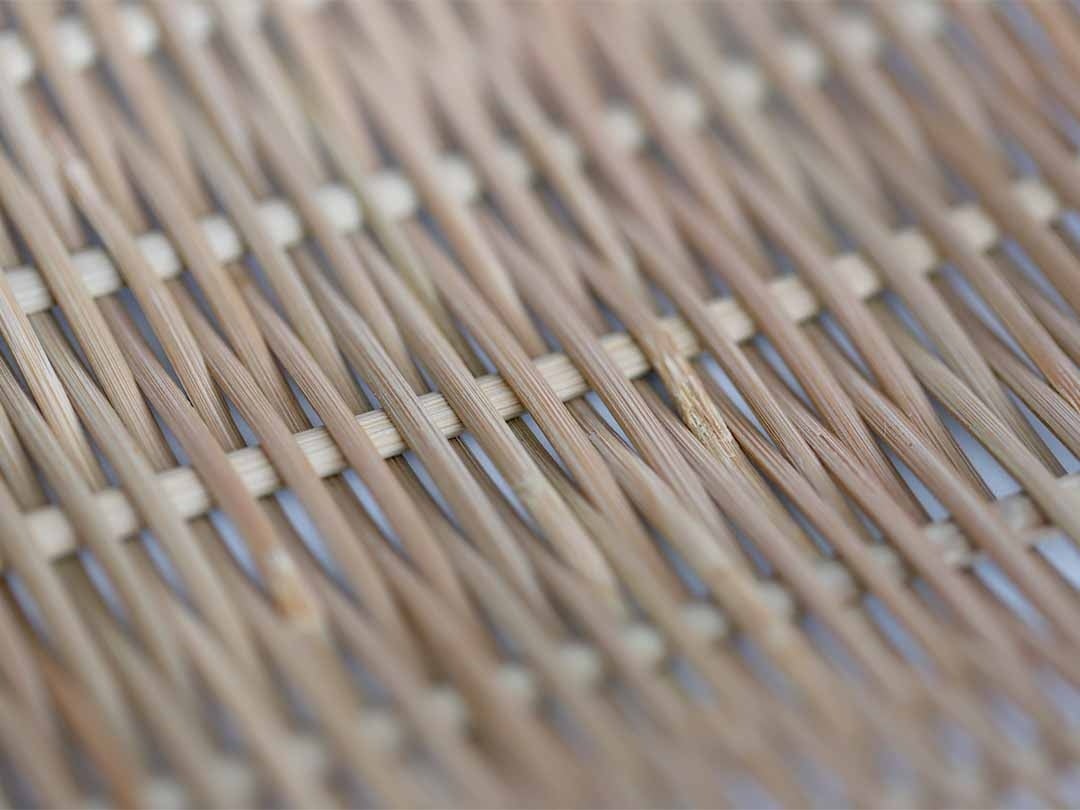 素材には、吸水性と強度に優れた天然竹を使用し、一つ一つの竹ひごはカマボコのような形状になっています。この構造により、食材から出た余分な水分を素早く逃がし、食材本来の美味しさを保つことができます。また、縁の部分には、美しく巻かれた籐が施されており、職人による手作業の細やかさと美しさを感じられる仕上がりとなっています。