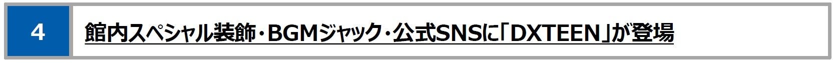 期間中の館内BGMを「DXTEEN」がジャックいたします。人気楽曲と、「DXTEEN」メンバーオリジナルコメントを、お買い物やお食事をしながら、ぜひお楽しみください。
